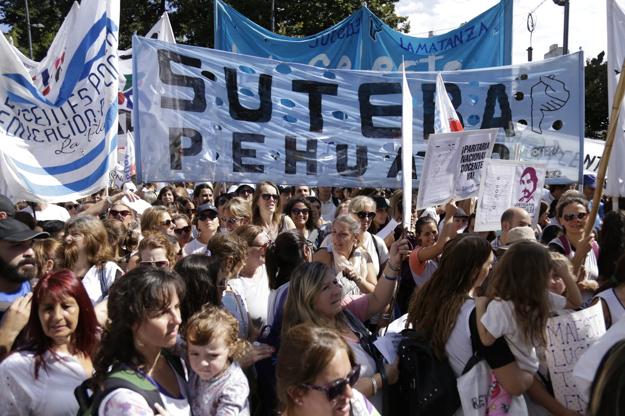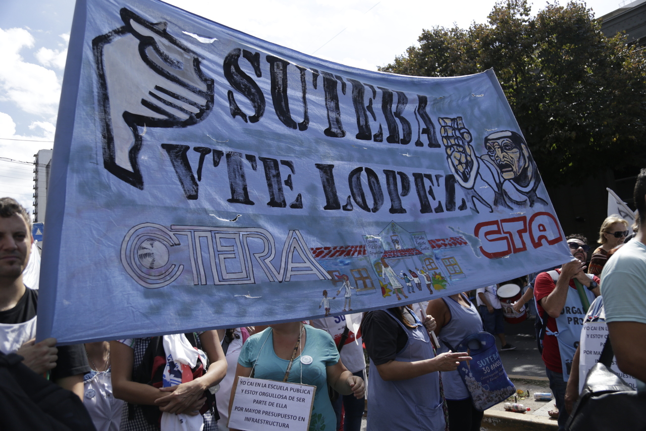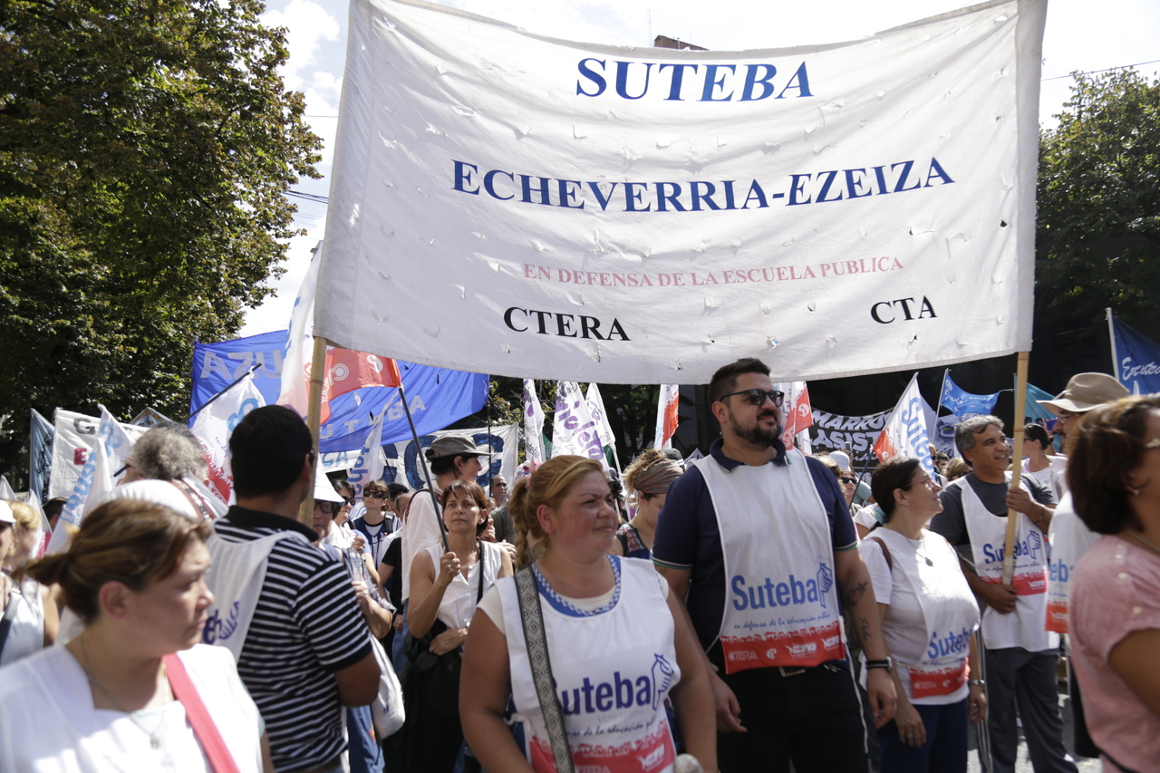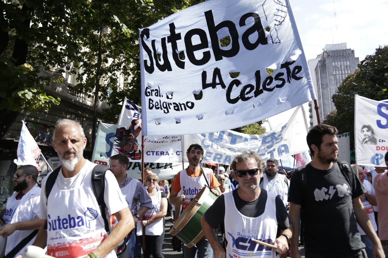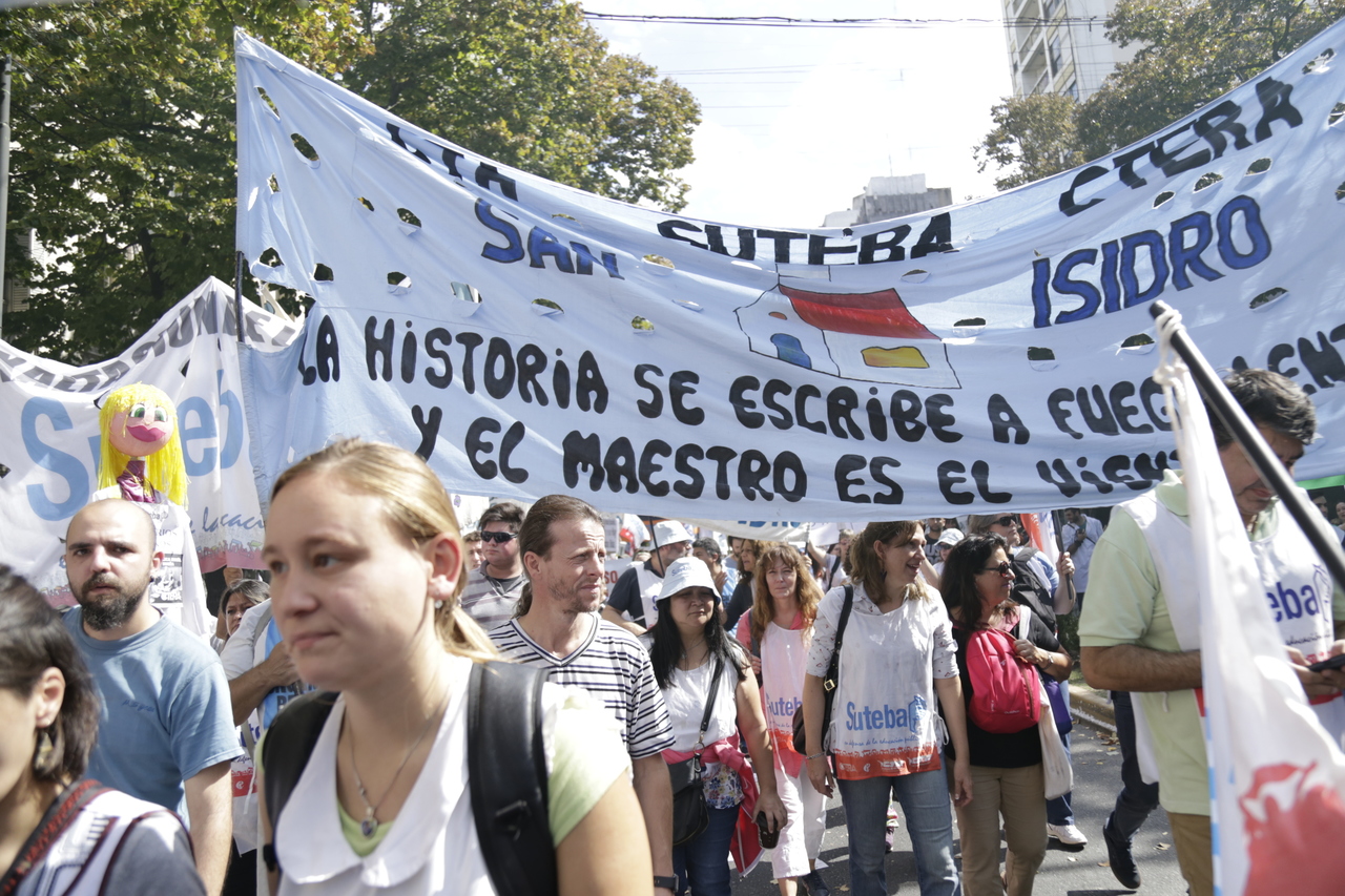 "Mienten cuando dicen que invierten en Educación, que el promedio salarial es de $25.000, que el aumento va a ser del 18%. Volvemos a repetirlo, seis veces nos ofrecieron lo mismo: el 15%, lo que varió fueron las sumas no remunerativas. Nosotrxs no vamos a firmar ninguna oferta que no incluya a nuestrxs jubiladxs o que nos obligue a cambiar plata por salud. La intención de Vidal no es negociar, es disciplinarnos y bajarnos los salarios. Acá tiene la respuesta: un Paro masivo y contundente", enfatizó Baradel.