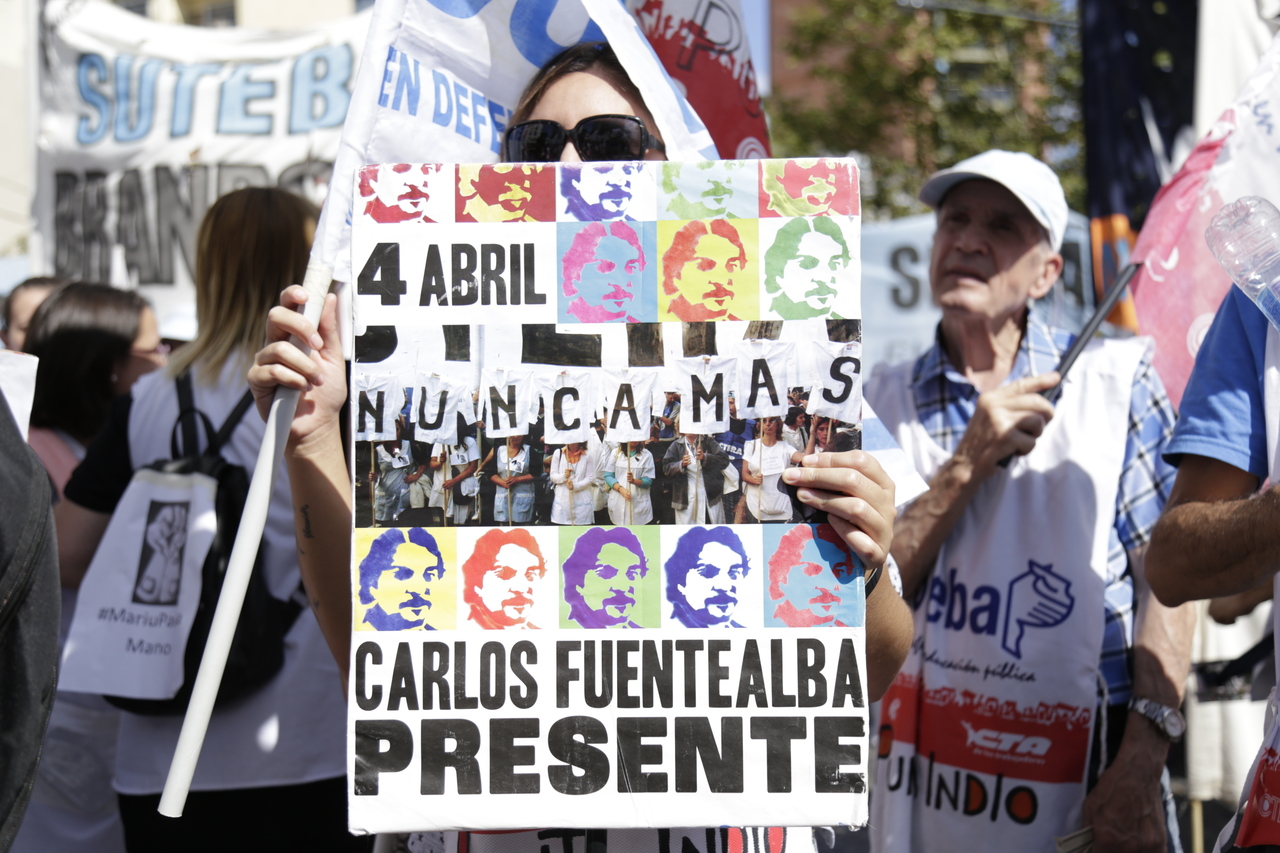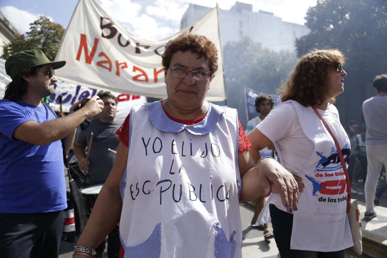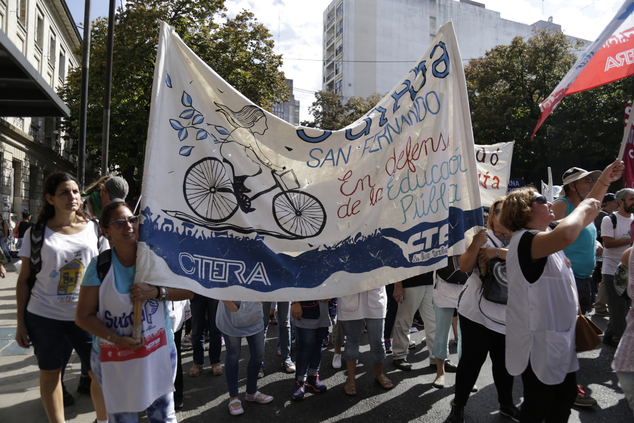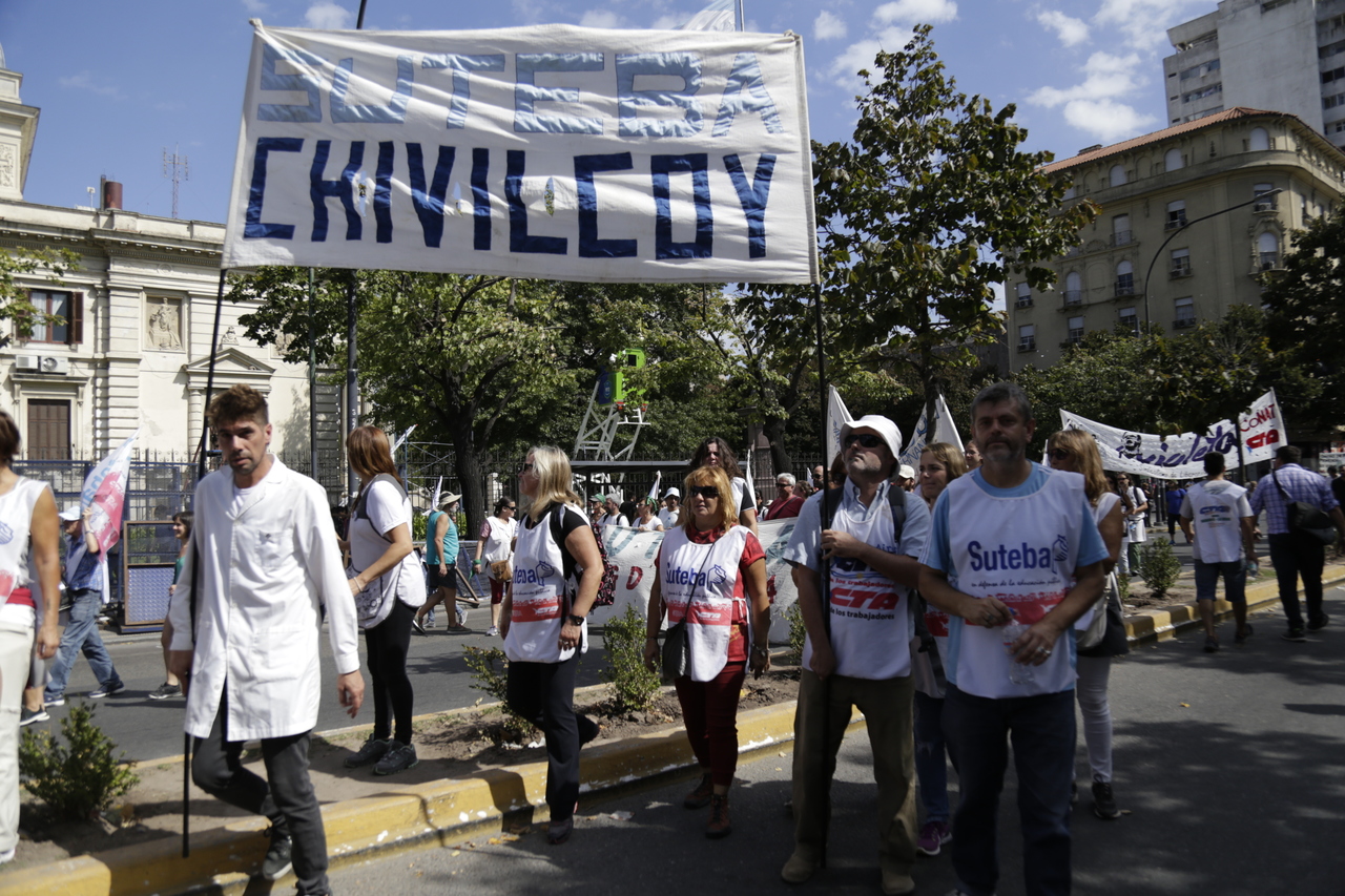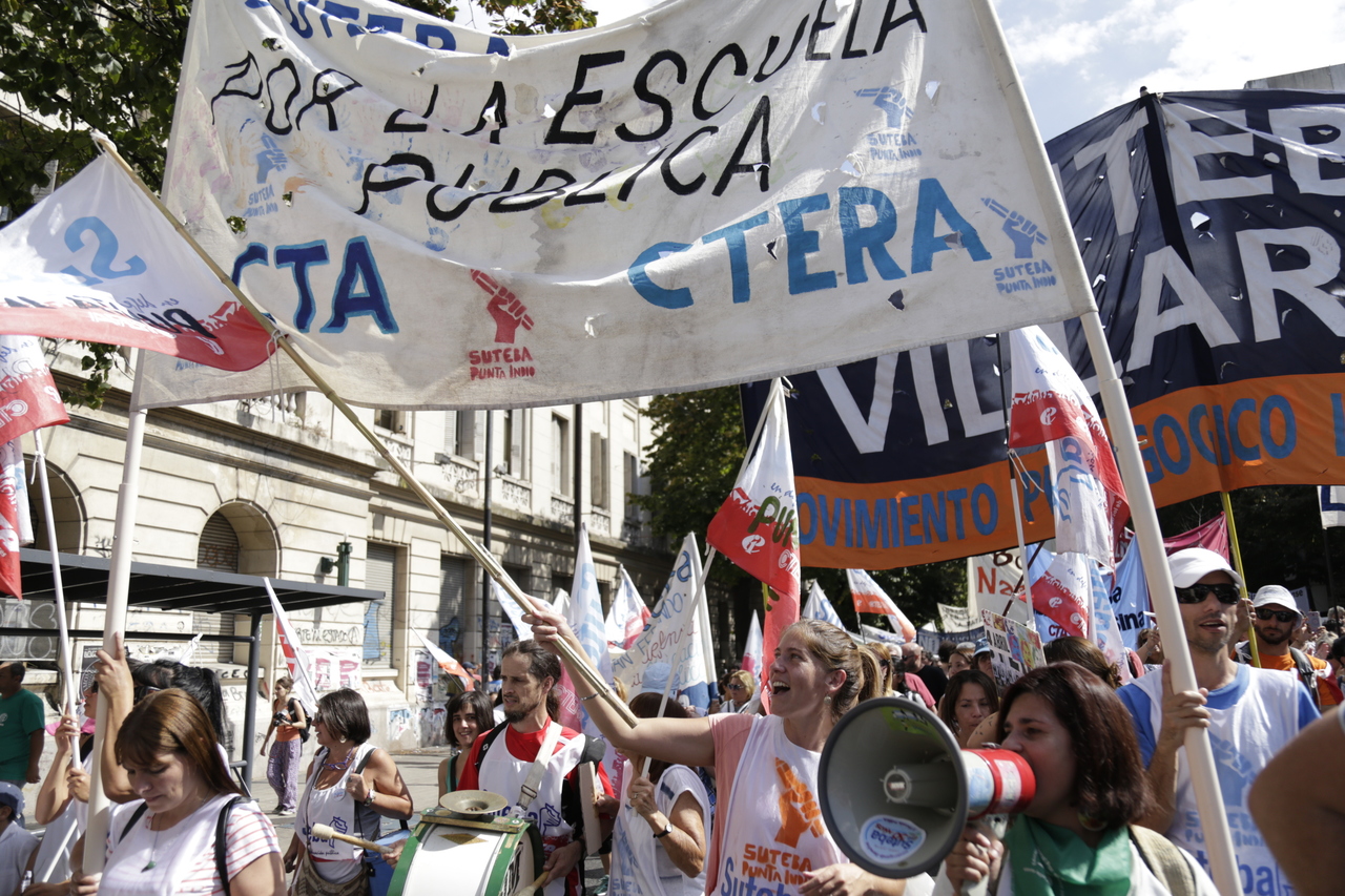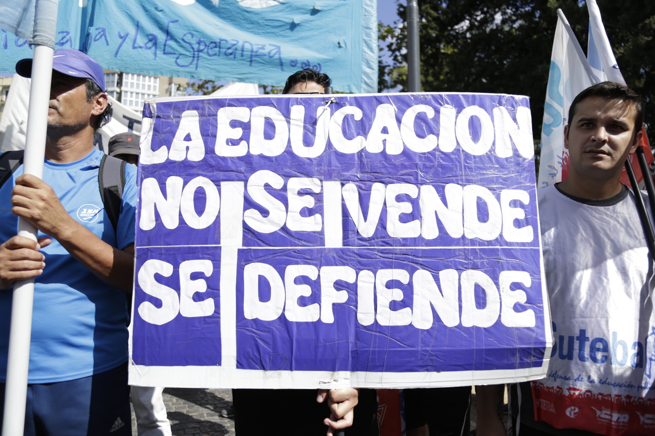 "Mienten cuando dicen que invierten en Educación, que el promedio salarial es de $25.000, que el aumento va a ser del 18%. Volvemos a repetirlo, seis veces nos ofrecieron lo mismo: el 15%, lo que varió fueron las sumas no remunerativas. Nosotrxs no vamos a firmar ninguna oferta que no incluya a nuestrxs jubiladxs o que nos obligue a cambiar plata por salud. La intención de Vidal no es negociar, es disciplinarnos y bajarnos los salarios. Acá tiene la respuesta: un Paro masivo y contundente", enfatizó Baradel.