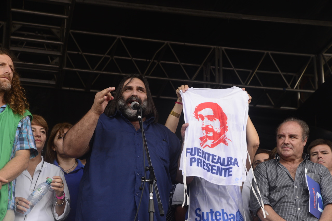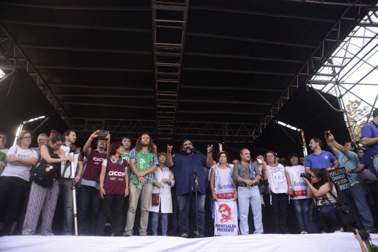 En el acto central, lxs dirigentes de cada sindicato tomaron la palabra; en este marco, el Secretario General de SUTEBA, Roberto Baradel, expresó: "Hoy tenemos que volver a recordar a nuestro compañero Fuentealba y exigir Justicia completa por su asesinato. El Paro tiene una adhesión mayor al 90% por las mentiras descaradas de la Gobernadora. Después de sus dichos, lxs que tenían dudas no las tuvieron más".