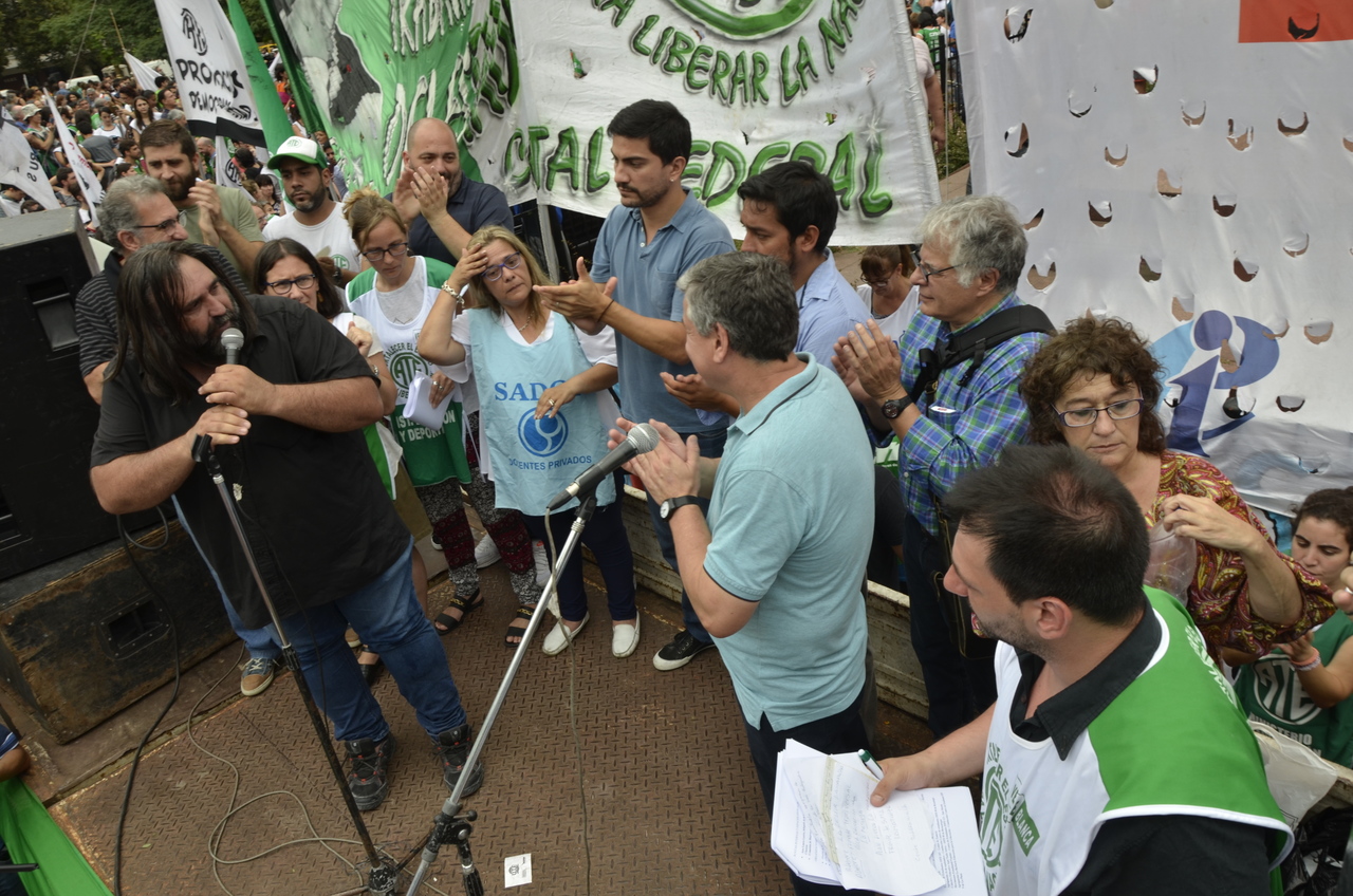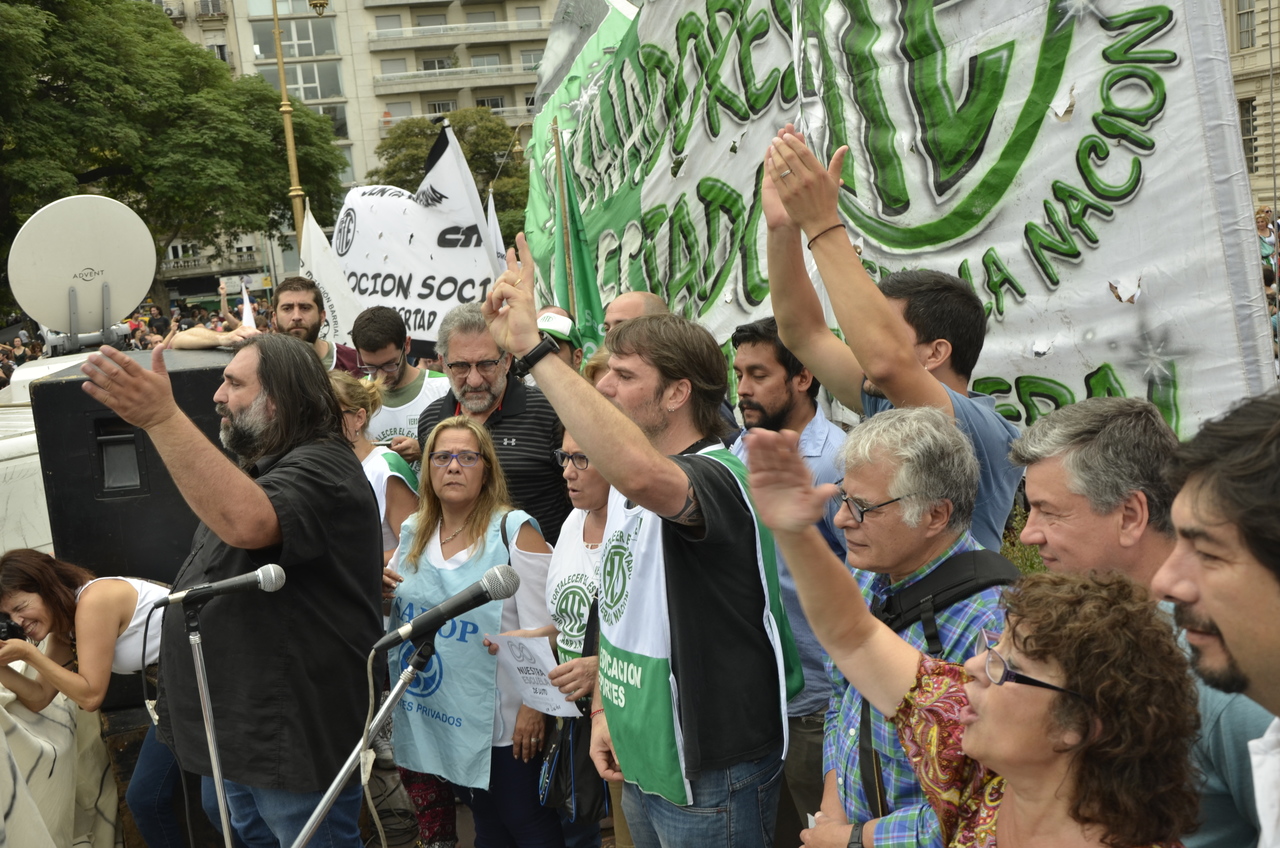 Por último, Baradel sostuvo: "Los trabajadores damos una muestra importante de unidad contra el ajuste de Macri, mientras él sigue de vacaciones. Si así empezamos el año, no van a iniciar las clases porque los docentes no vamos a permitir más despidos".