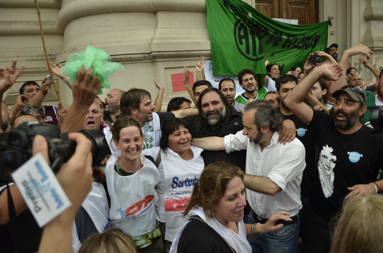 El martes 3, SUTEBA estuvo presente en el Ministerio de Educación para realizar un abrazo simbólico junto a los compañeros de ATE, quienes fueron reprimidos en el día de ayer y vienen sufriendo las políticas de ajuste que impulsa el Gobierno Nacional: 3000 trabajadores despedidos, cierres de programas y recortes. En esta acción participaron también CTERA, CTA, UTE y diferentes agrupaciones sociales y políticas. Durante el acto, tomaron la palabra Daniel Catalano y Rodrigo Recalde por ATE y Pedro Wasiejko por CTA Nacional, como también Roberto Baradel, Secretario General del SUTEBA y Sonia Alesso, Secretaria General de CTERA.