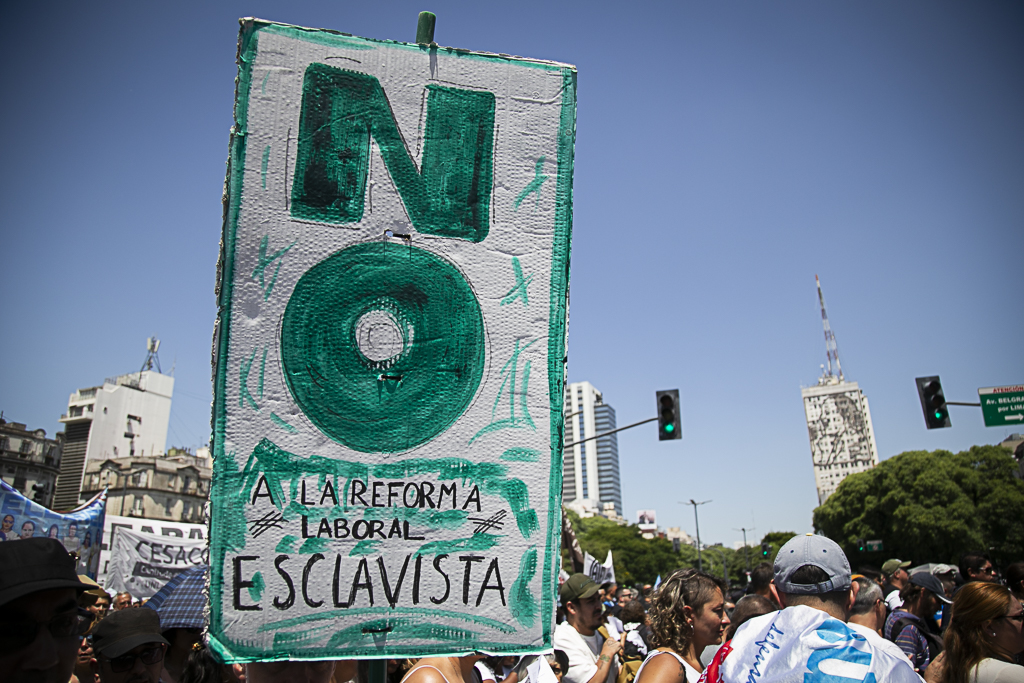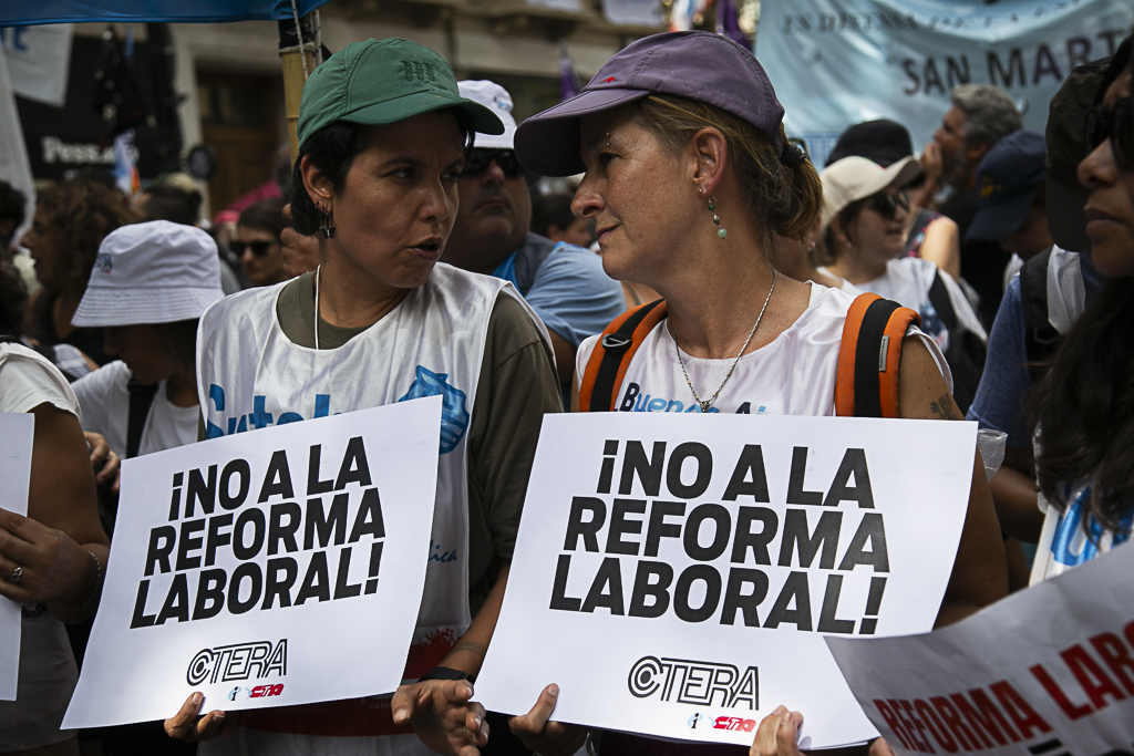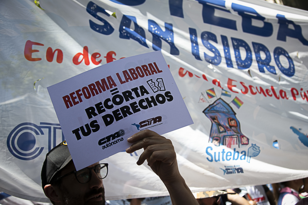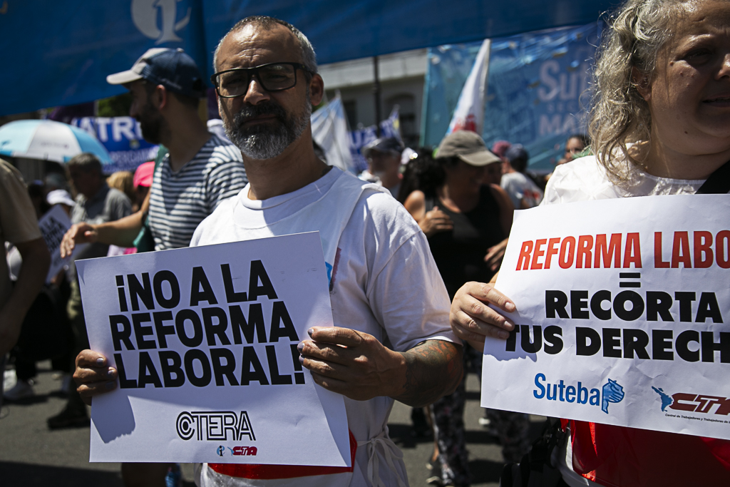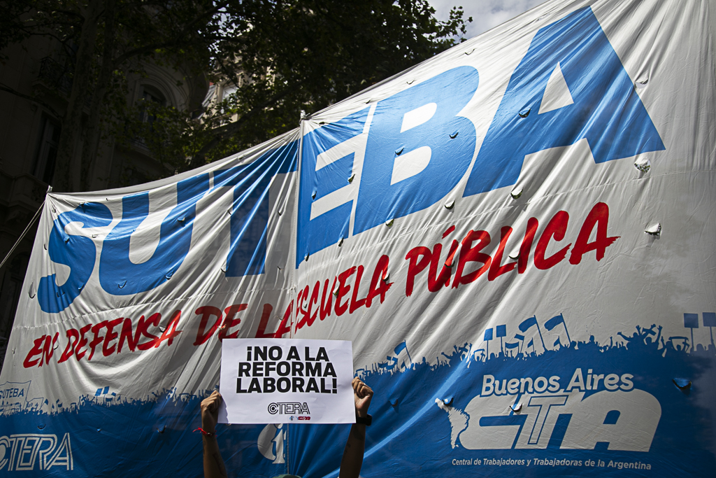 Roberto Baradel, Secretario General del SUTEBA: "La aprobación del proyecto mal llamado de 'modernización laboral' intenta dar por tierra con 70 años de conquistas de lxs Trabajadorxs en la República Argentina. Por eso, ambas CTA, junto a gremios de la CGT, nos movilizamos rechazando y repudiando este proyecto de precarización laboral y quita de derechos. Vamos a seguir movilizadxs y luchando hasta terminar definitivamente con este proyecto que intenta dejar desprotegida a la clase trabajadora".