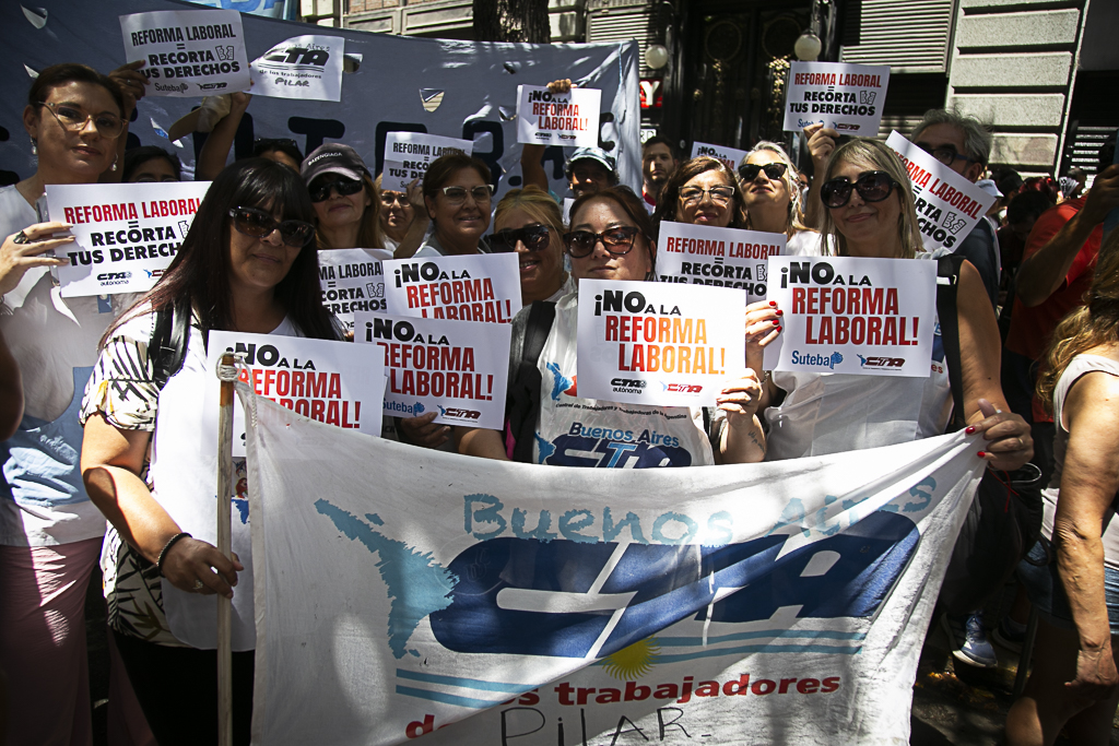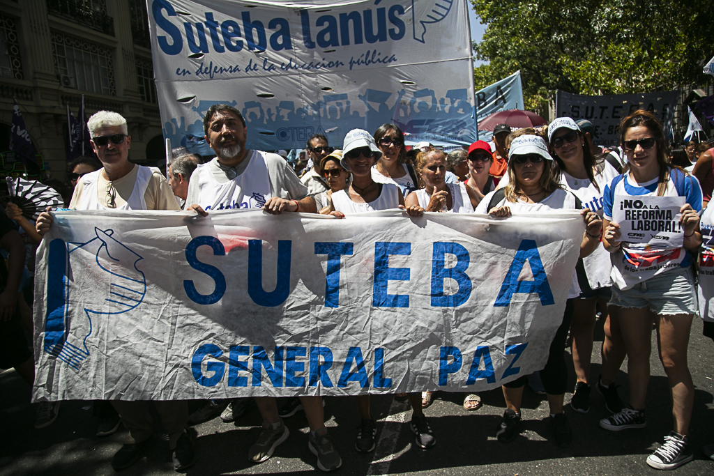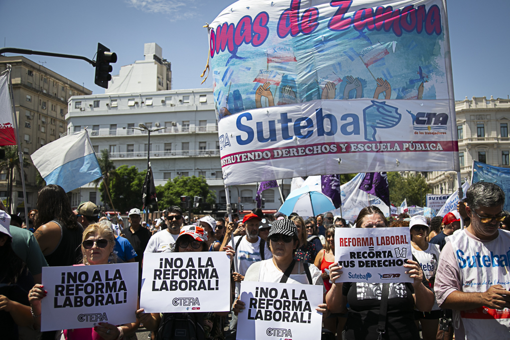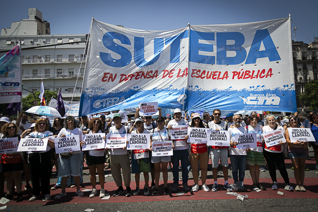 Este miércoles 11 de febrero, el SUTEBA participó activamente del paro y la movilización al Congreso de la Nación en el marco de la jornada nacional de lucha convocada por las dos CTA y la CGT, expresando su firme rechazo a la reforma laboral impulsada por el Gobierno Nacional.