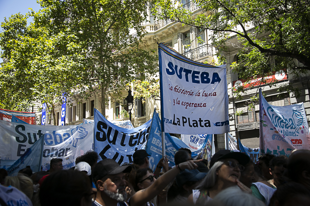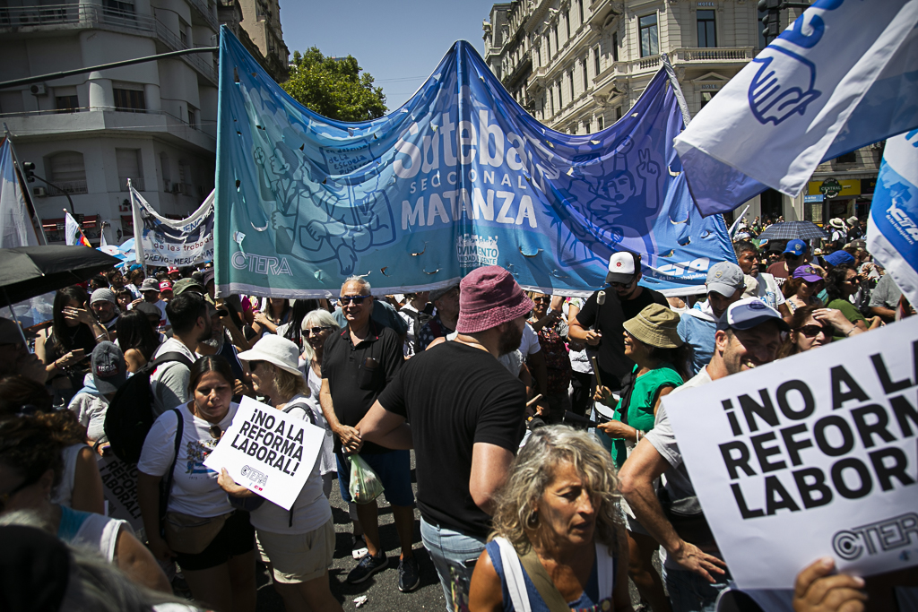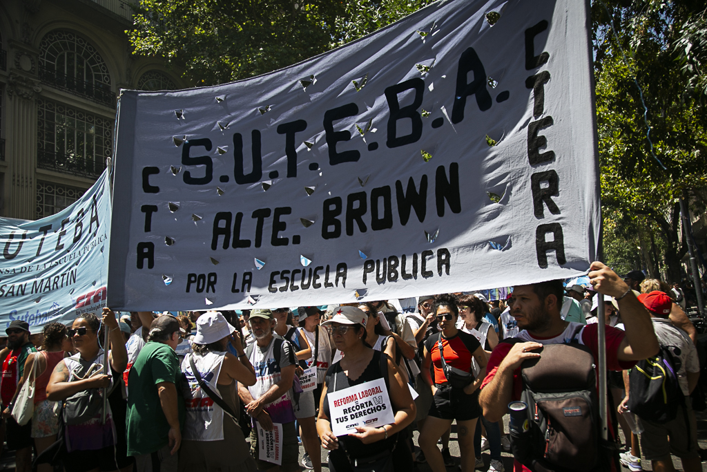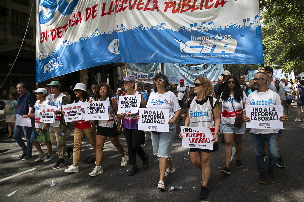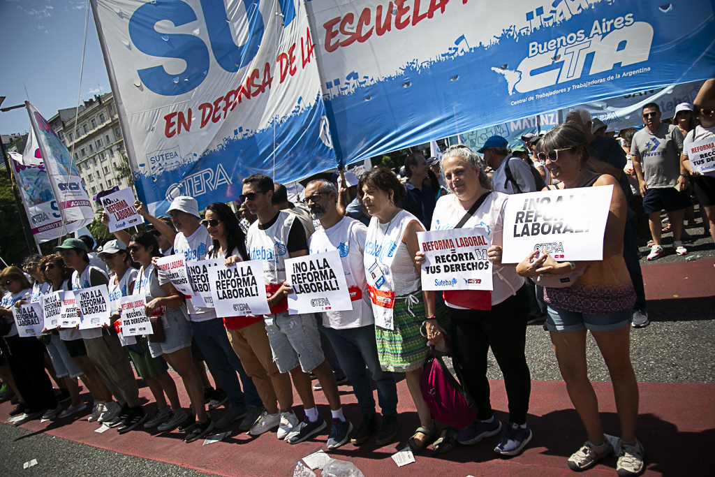 Este miércoles 11 de febrero, el SUTEBA participó activamente del paro y la movilización al Congreso de la Nación en el marco de la jornada nacional de lucha convocada por las dos CTA y la CGT, expresando su firme rechazo a la reforma laboral impulsada por el Gobierno Nacional.