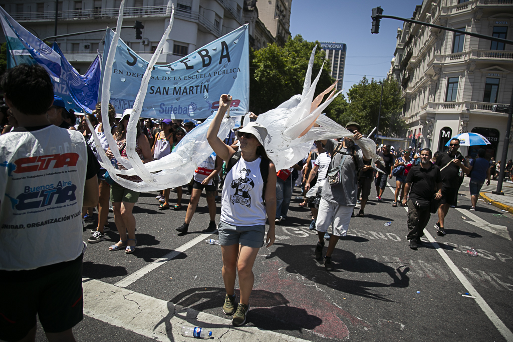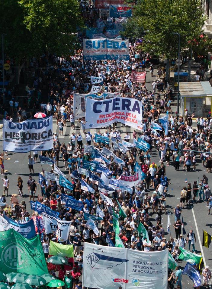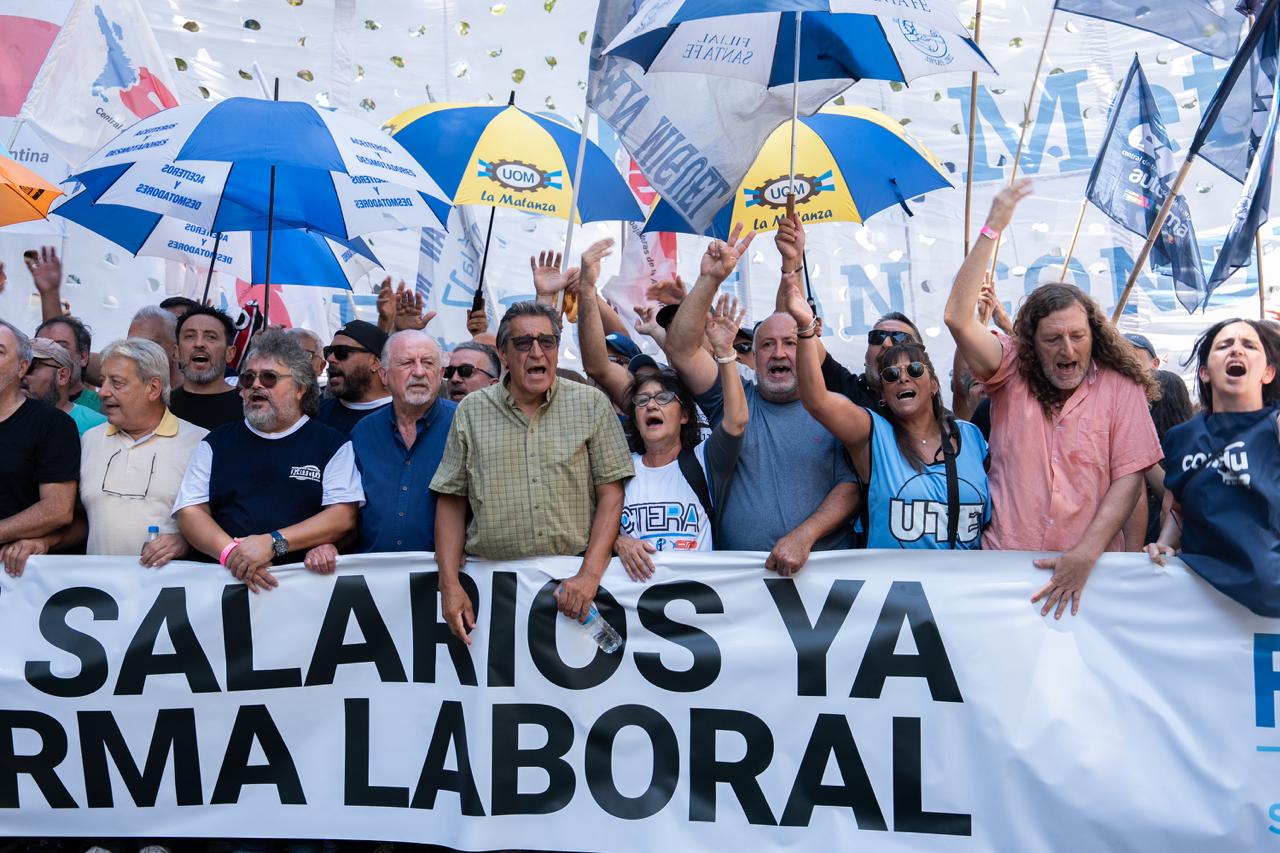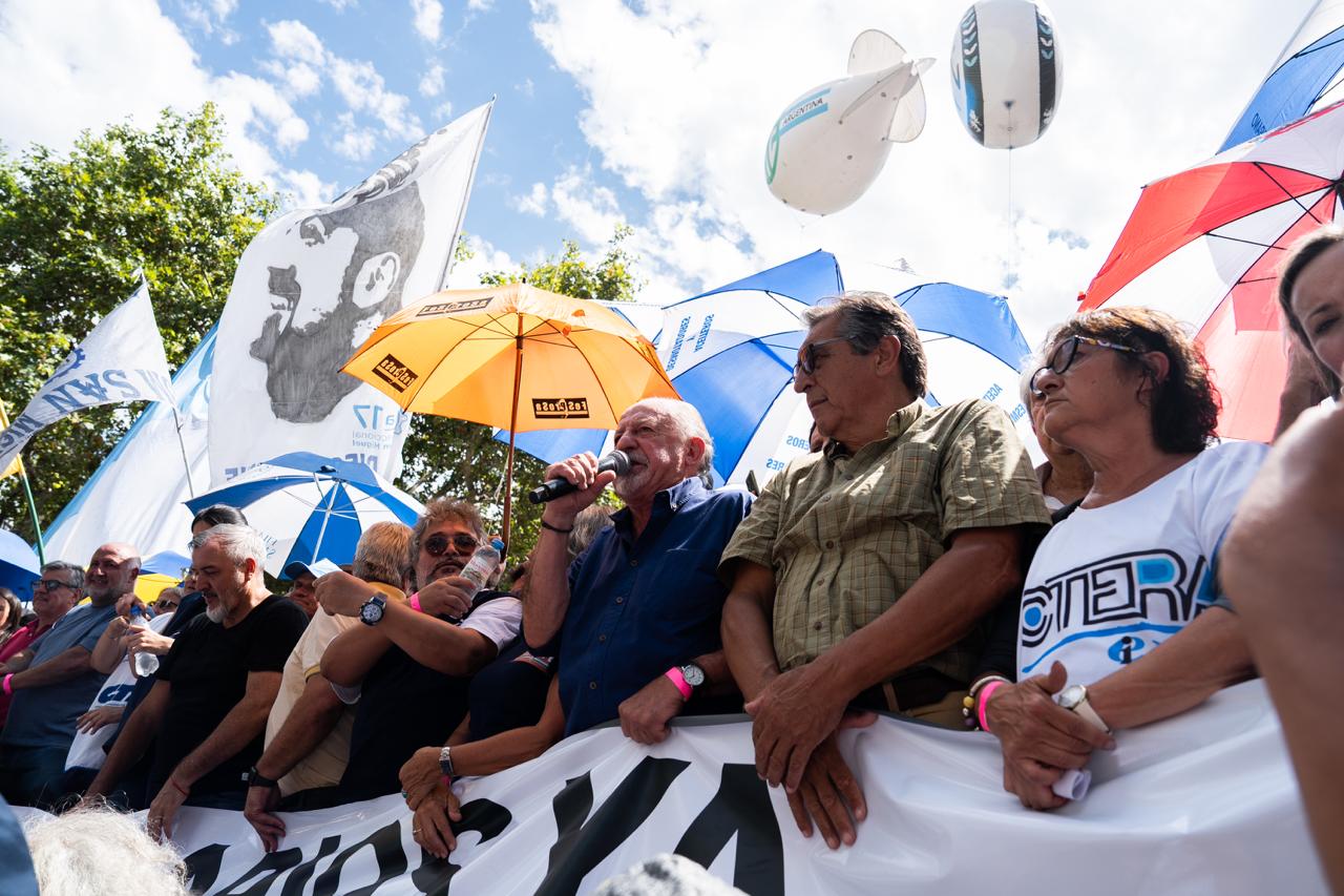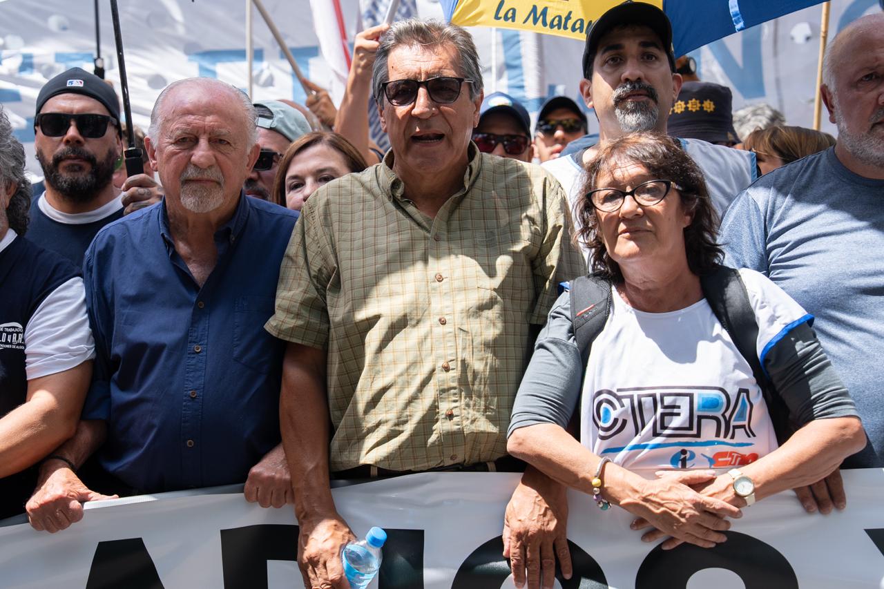 Hugo Yasky, Secretario General de la CTA de lxs Trabajadorxs: "Esto que estamos viviendo hoy es una suerte de dictadura que imponen los grupos más poderosos de adentro y de afuera del país. Tenemos que recuperar los derechos laborales, pero también el salario, el ingreso de lxs jubiladxs y la Educación Pública. Creo que hoy empieza una nueva historia en la Argentina. Esta movilización masiva asegura que lxs Trabajadorxs empezamos un camino de lucha que no termina hasta recuperar los derechos laborales, el salario y la Educación Pública. También seguiremos dando batalla en el bloque de Diputadxs con el objetivo de construir una mayoría".