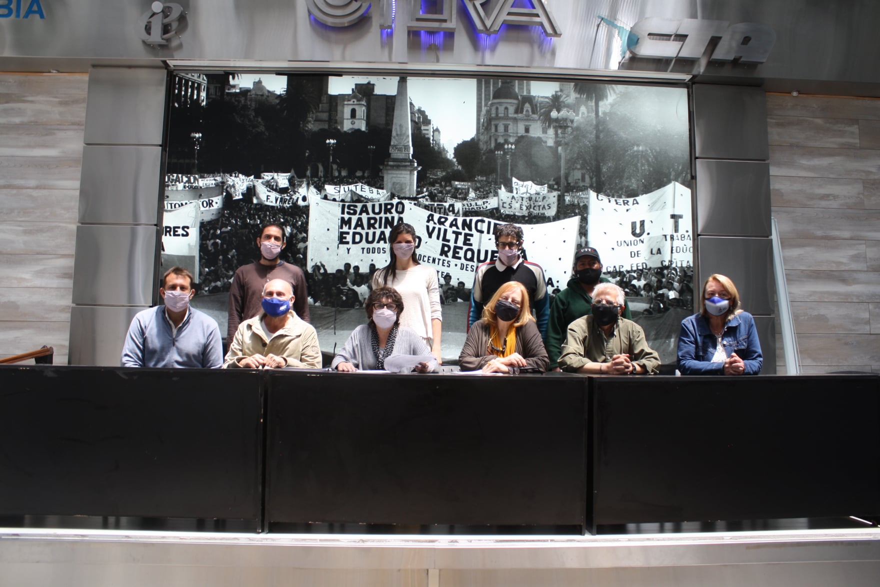 Del encuentro participaron Sonia Alesso; Miguel Duhalde, Secretario de Educación de la CTERA; Alejo Demichelis, Director de Prensa de la CTERA; Mariela Leiva, Comisión Ambiente de la CTERA; Mariano Pagnucco de SiPreBa; Italo Choque Baldiviezo de la UTT; Miriam Lewin, Titular de la Defensoría; Mónica Beltrán, Directora de Comunicación de la Defensoría; y Sebastián Novomisky, Director de Capacitación y Promoción.