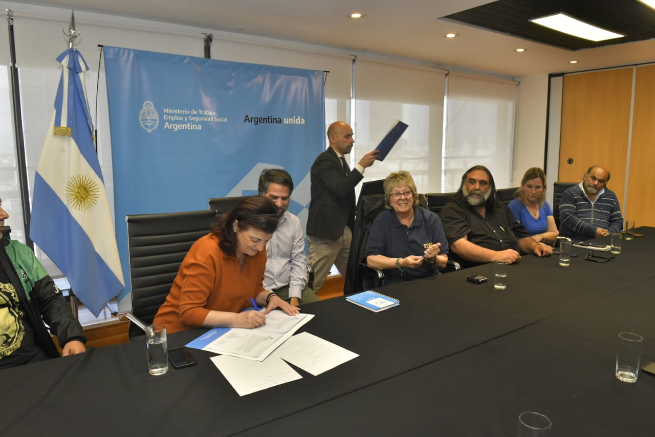 Participaron de la firma Roberto Baradel, Secretario General del SUTEBA; la Ministra de Trabajo, Kelly Olmos; Mariana Cattaneo, Secretaria de Formación Político Sindical; y Eduardo Caprarulo, Secretario de Organización.