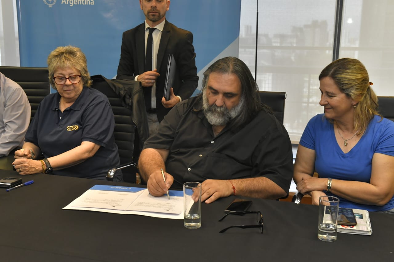 Participaron de la firma Roberto Baradel, Secretario General del SUTEBA; la Ministra de Trabajo, Kelly Olmos; Mariana Cattaneo, Secretaria de Formación Político Sindical; y Eduardo Caprarulo, Secretario de Organización.