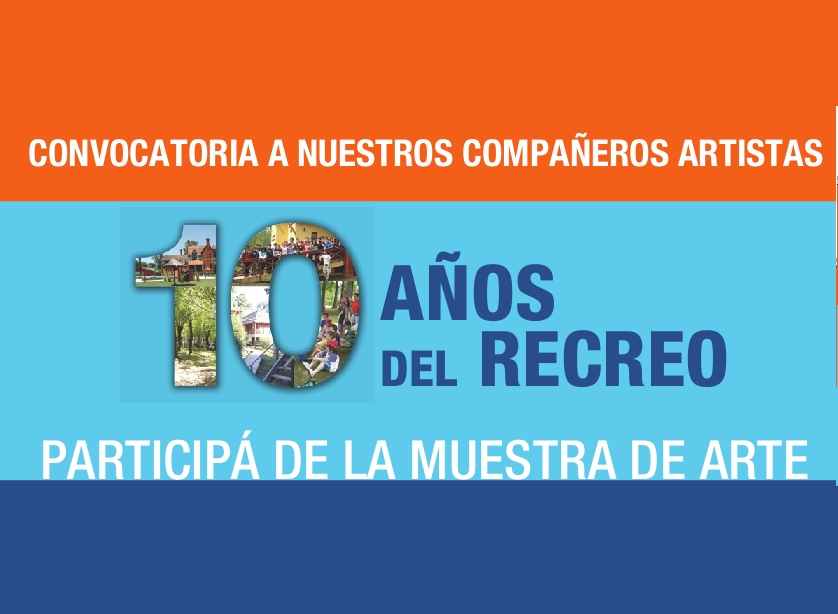 La Secretaría de Promoción Social de SUTEBA, convoca a todos los compañeros que realicen actividades en alguna rama del arte, ya sea pintura, escultura, grabados, fotografía, poesía, prosa, teatro, canto, baile o música, a participar del Encuentro festejando los 10 años del Recreo “de compañero a compañero”, a realizarse en el Recreo de Tigre los días 5, 6, 12, y 13 de noviembre.