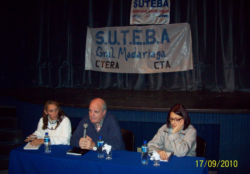 El 17 de septiembre desarrollamos actividades en la Seccional General Madariaga, donde estaban presentes tanto los compañeros del distrito como representantes de Pinamar y Villa Gesell. En Madariaga las actividades de Coopteba han trascendido los límites de nuestro sindicato, y los propios medios de comunicación entienden que tienen un valor para toda la opinión pública. Tanto es así que antes de iniciar la charla debimos atender al canal de televisión local, quienes concurrieron con un periodista y un cameraman para realizarnos un reportaje, dado que consideraban a esta reunión como un evento de importancia para la localidad. Posteriormente y con gran interés del auditorio, se desarrolló la charla que se complementó luego en un sinnúmero de preguntas sobre las Cooperativas.