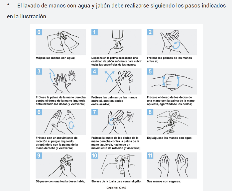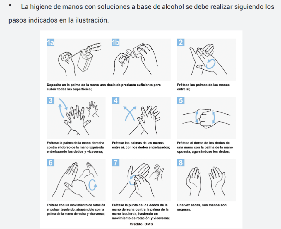 | RECOMENDACIONES VISUALES | Poner información a disposición del público sobre la adecuada higiene de manos y la apropiada higiene respiratoria. |