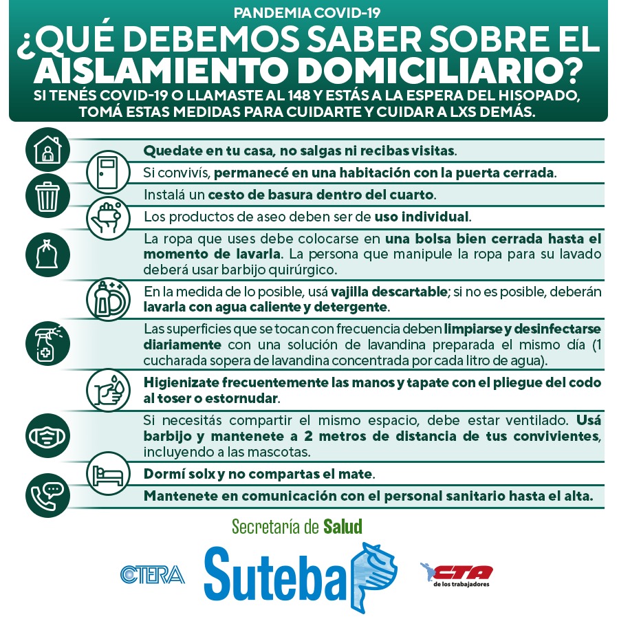 AISLAMIENTO DOMICILIARIO: ¿QUÉ MEDIDAS DE CUIDADO TOMAR EN CASO DE TENER SÍNTOMAS COMPATIBLES Y/O COVID-19 CONFIRMADA? Información ingresando acá