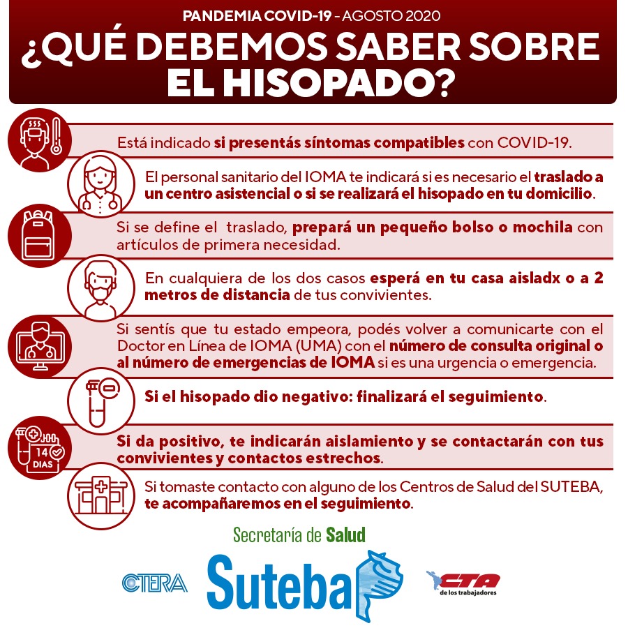 - El personal sanitario del IOMA te indicará si es necesario el traslado a un centro asistencial o si se realizará el hisopado en tu domicilio.