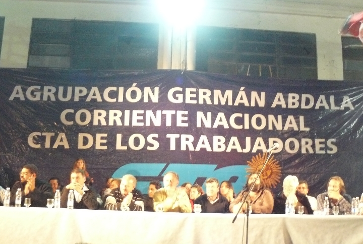 Roberto Baradel, luego de reivindicar la lucha de los compañeros de los asentamientos Barrio Tierra y Libertad y Gauchito Gil por tierras en Ciudad Evita, expresó: “Quiero manifestar tres cuestiones: La primera es que seguimos construyendo una Central autónoma en serio. Cuando decimos autonomía del gobierno reclamamos libertad y democracia sindical y personería gremial para la CTA. Cuando decimos autonomía de las patronales, le decimos no a la Federacion Agraria, a la Sociedad Rural, a los grupos económicos. Y fundamentalmente decimos sí a las retenciones. Esta central también es autónoma de los partidos políticos, por eso le decimos no a la derecha.