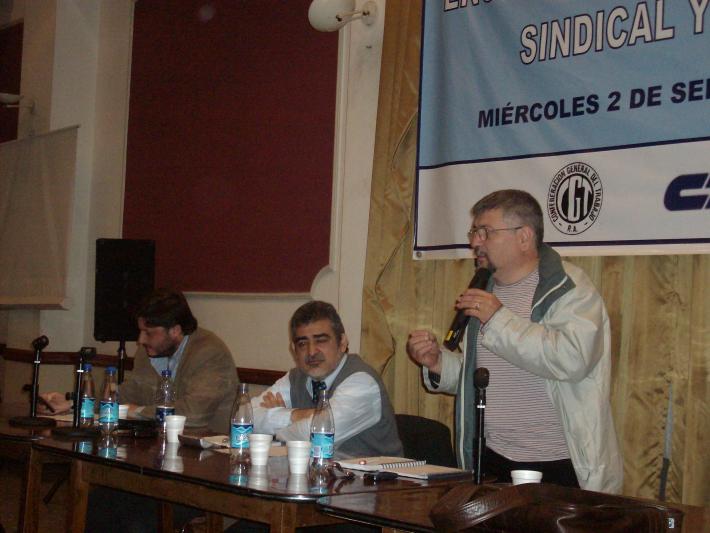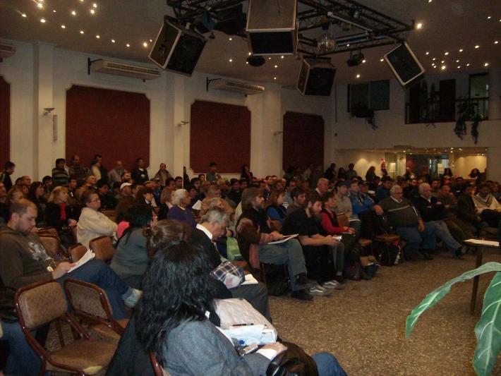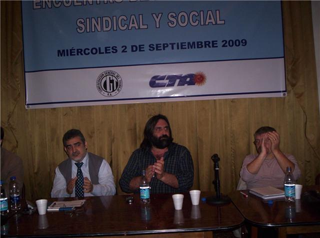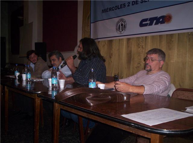 “Cuando se trata de defender nuestros derechos, las organizaciones no son fronteras”.Así lo aseguró María Reigada, Secretaria General de la CTA La Matanza, flanqueada por Carlos Gdansky, Secretario General de la CGT local, en su discurso de bienvenida a los más de 400 compañeros, delegados docentes, metalúrgicos y un amplio abanico de organizaciones sociales que desbordaron las instalaciones del Centro de Industriales Panaderos en San Justo.Posteriormente los panelistas Roberto Baradel, Gonzalo Carbajal, Sergio Fernández Novoa y Néstor Piccone analizaron las implicancias del proyecto de Ley de Servicios Audiovisuales.La jornada había comenzado con un gesto de unidad de los presentes quienes cantaron el Himno Nacional, y culminó de la misma forma cuando ellos se fueron charlando animadamente acerca de lo histórico del encuentro.Todos los presentes coincidieron en la necesidad política de apoyar e impulsar esta ley para profundizar la distribución de la riqueza y de la palabra, y fortalecer la democracia en una sociedad profundamente atravesada por el discurso mediático.