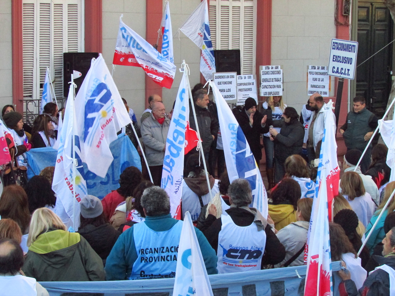 En la actividad se encontraban presentes los Secretarios Adjuntos de la CTA, Raúl Calamante y Daniel Pérez Guillen. Calamante, Secretario de Interior del SUTEBA, expresó:"Estamos peleando para que el IOMA tenga el funcionamiento que corresponde, fundamentalmente porque los que hacemos los aportes somos los trabajadores de la Provincia de Buenos Aires. No vamos a bajar los brazos porque creemos que tiene que funcionar a la altura de las circunstancias. Para lograr avances tenemos que llevar adelante reuniones en todos los distritos con los círculos médicos para comprometerlos a que cumplan con todos los trabajadores, además de pelear por lugares de atención adecuados. De no ser así, nos movilizaremos todas las veces que sea necesario hasta tener las soluciones definitivas".