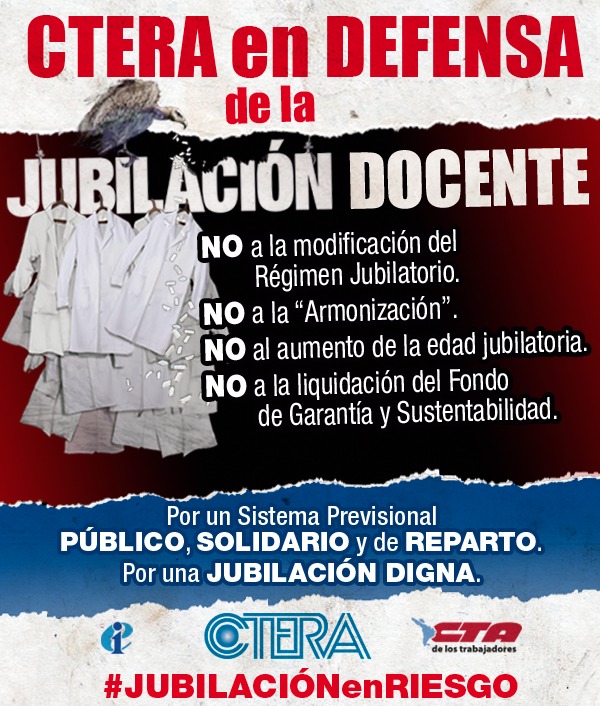 Ante la necesidad de alertar a la sociedad en su conjunto del riesgo que corren el Sistema Previsional y la jubilación docente, CTERA realizó por tres días una nueva Campaña en Redes para visibilizar este conflicto latente. Desde el miércoles 21 de junio y a nivel nacional, manifestamos nuestra negativa a los cambios que el Gobierno Nacional busca implementar.