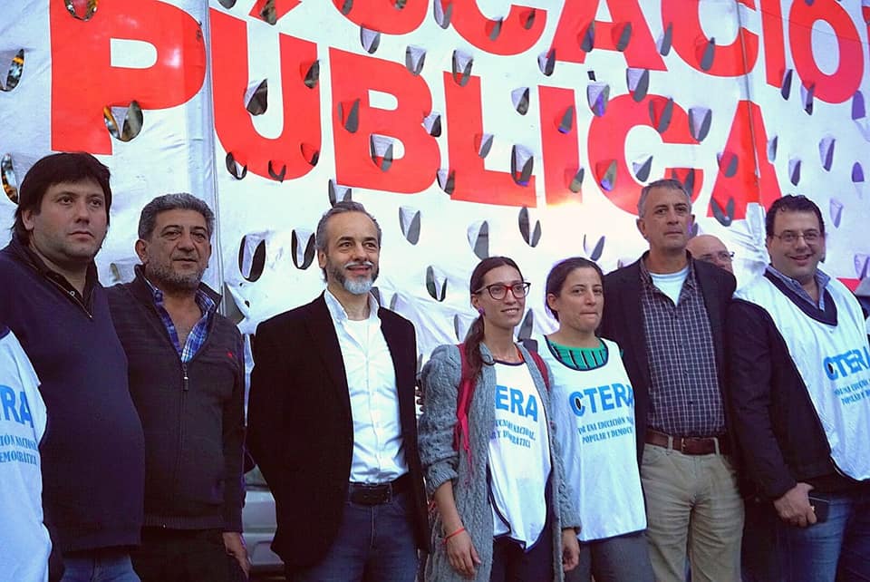 La CTERA estuvo representada por Eduardo López - Sec. Gremial - y Guillermo Parodi - Sec. de Prensa - junto a Marcelo Creta - Sec. de Asuntos Universitarios de UTE -.