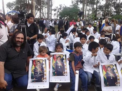 En el establecimiento estuvieron presentes su maestra de primer grado junto a una delegación de la comunidad boliviana y un grupo de ex compañeros. La maestra Elva del Valle Kutny declaró a la prensa que "algo bien habré hecho, no me guardé nada", recordando que la escuela en aquel entonces no tenía ni luz ni agua en un contexto en el que, aclara, daba clases a varios cursos en simultáneo.