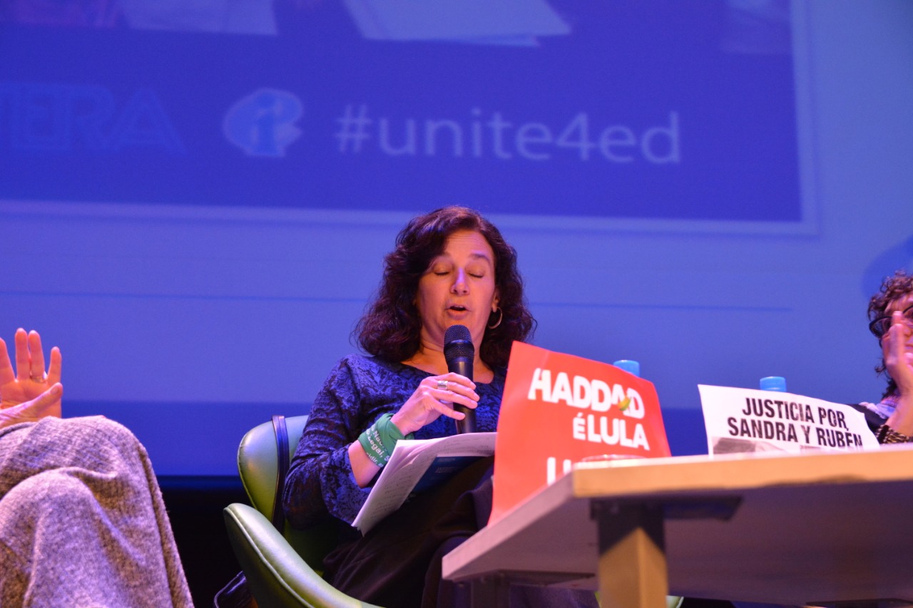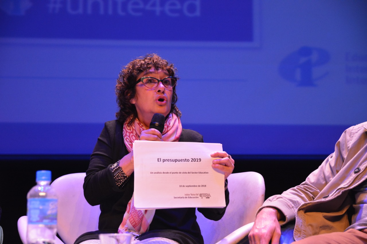 "El Presupuesto Educativo está hecho a la medida de los requisitos del FMI. Es el Presupuesto con más recortes de nuestro país. La intención es terminar con la educación pública. Apuran la crisis del sistema educativo, con ese Presupuesto no se puede funcionar. Y esta crisis que provocan es para acelerar la privatización y mercantilización de la Educación Pública. Hay un financiamiento a fundaciones, que lucran con la educación. Esto está planificado, hay una "gobernanza global", que predetermina las acciones para acelerar la privatización de la educación. Esa "gobernanza" la integran la OMC, la OCDE, el FMI y el Banco Mundial. Tenemos que ser conscientes de que defender la educación pública como un derecho es ir en contra del sentido común que tratan de instalar los que hoy gobiernan la Argentina, pero también es ir en contra del sentido común que tratan de instalar los que gobiernan el mundo. ¿Por qué?: Porque necesitan sociedades divididas, sociedades fragmentadas, aptas para la guerra híbrida que impulsan en todo el mundo. Por eso el ataque a la Escuela Pública y por eso tenemos que defenderla."