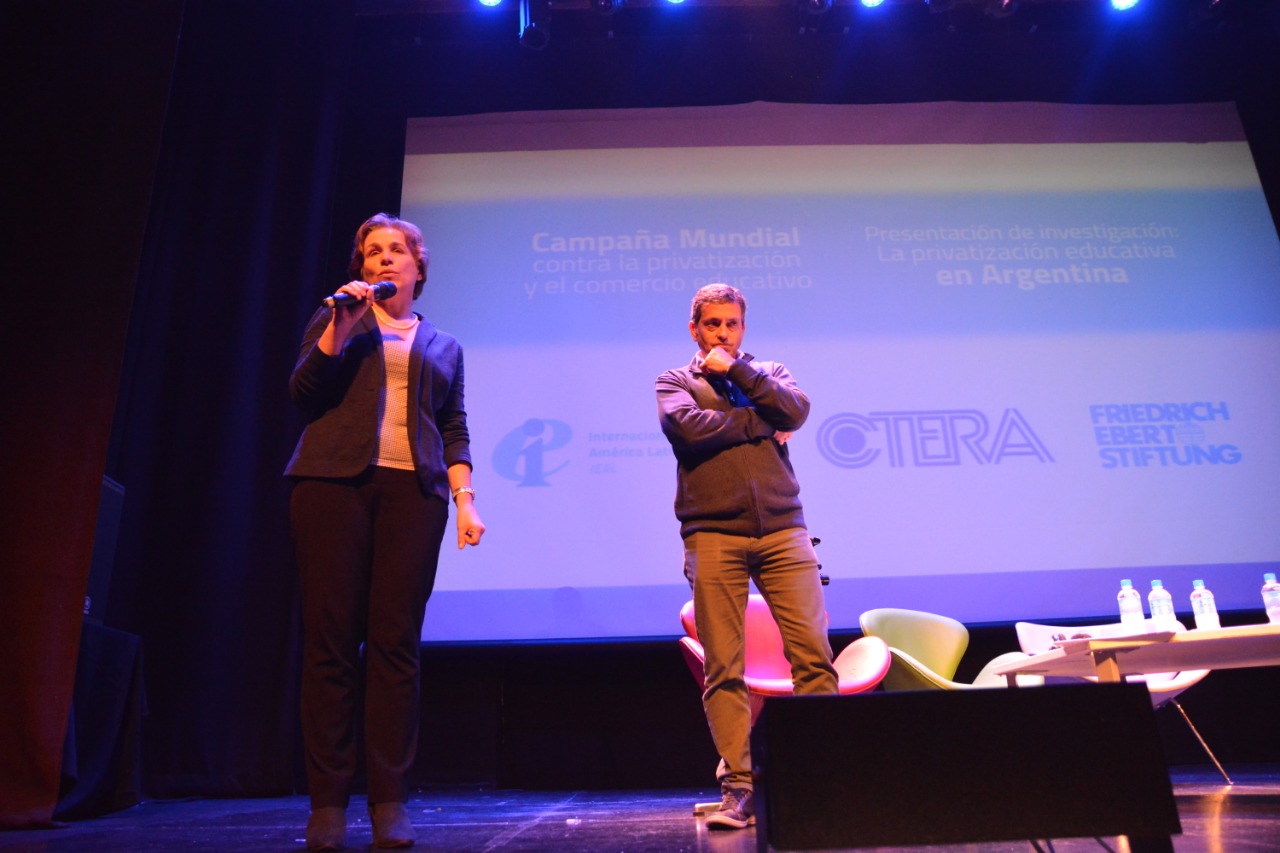 "Este informe muestra el avance de políticas privatizadoras de la educación en el mundo y en Argentina. Hay un creciente desfinanciamiento de la educación pública, un desinterés del Gobierno Nacional en la escuela pública, con marcada tendencia a privilegiar a la educación privada. Hace unos días - ante el desfinanciamiento y la reducción del Presupuesto Educativo -, como iniciativa de CTERA, CONADU y SADOP se presentaron cinco proyectos de Ley que iban a beneficiar a la educación. El oficialismo no dio quórum y la sesión no pudo realizarse. Esto demuestra, una vez más, la desidia y el desinterés del gobierno en dar solución a los problemas educativos."