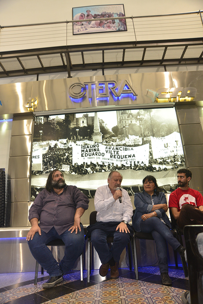 Luego, el Secretario General de SUTEBA, Roberto Baradel, declaró: "Estamos acá para pensar y discutir juntos. Nosotros les damos nuestra verdad, la mirada que tenemos. Pero esto no pretende ser una verdad revelada... justamente lo que buscamos es discutir, intercambiar opiniones. Saber cómo ven las cosas ustedes, eso es muy importante para nosotros".
