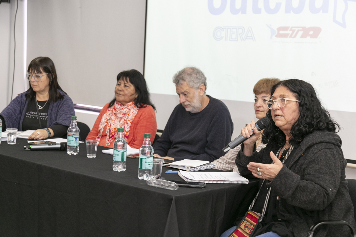 En la misma línea, Silvia Almazán, Secretaria General Adjunta, realizó una apertura política denunciando los discursos negacionistas actuales y, en ese marco, destacó la importancia de seguir trabajando desde las Escuelas Públicas la Memoria, la Verdad y la Justicia. Asimismo, subrayó la necesidad imperiosa de entretejer conocimientos colaborativos que permitan definir el destino colectivo, el proyecto de país que queremos y disputar la construcción de sentido.