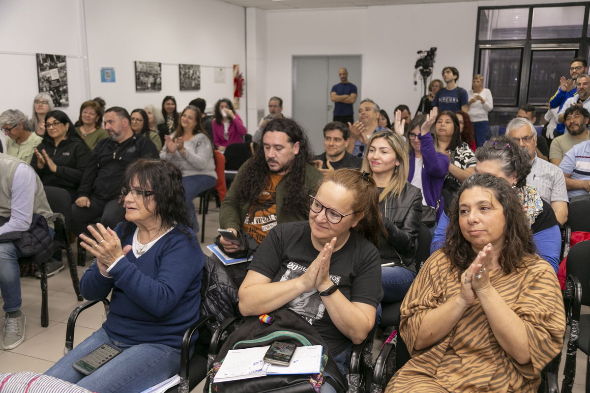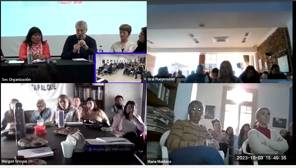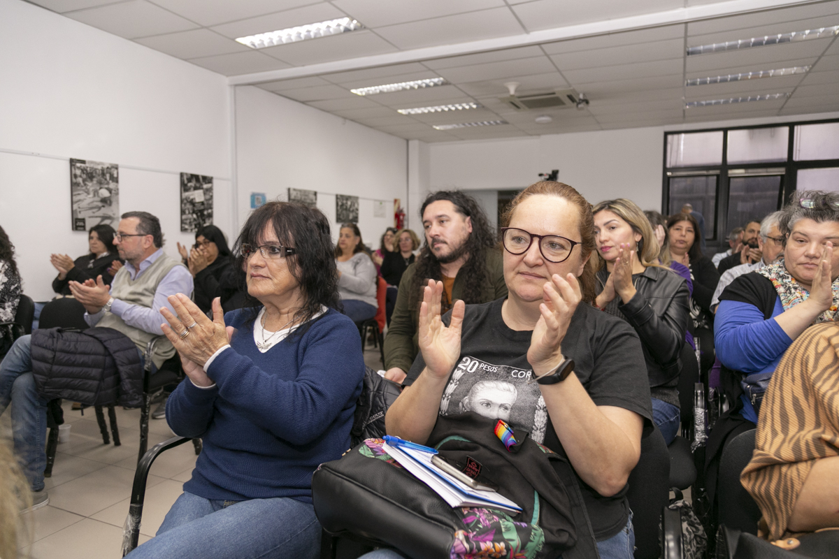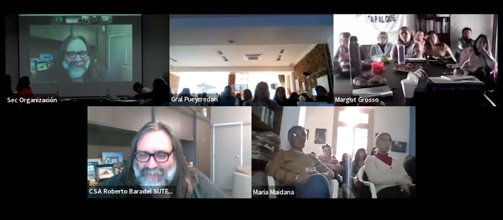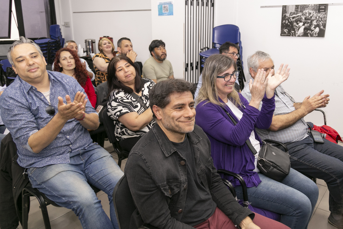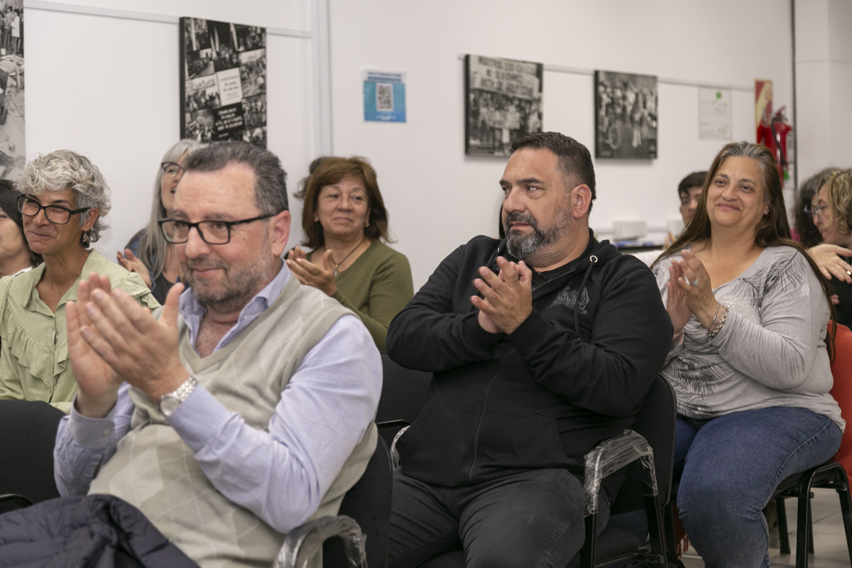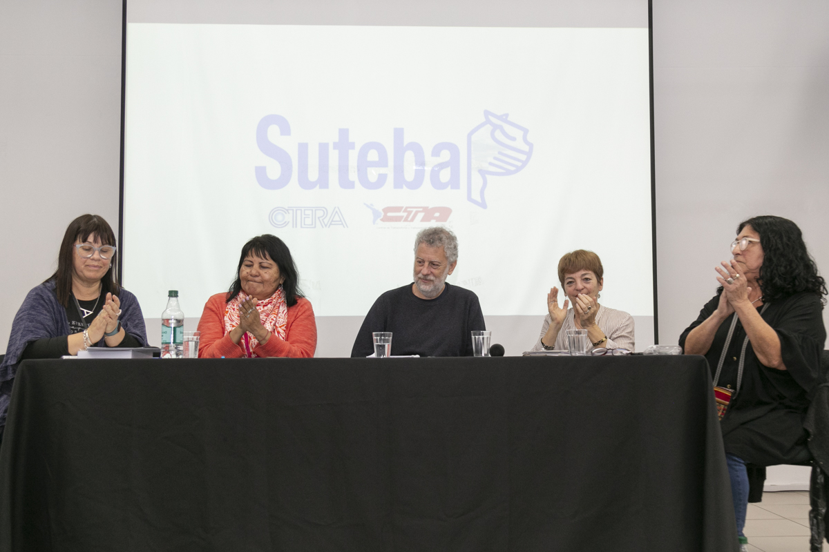 El encuentro contó con la participación virtual y presencial de Trabajadorxs de la Educación y dirigentes de la Provincia y la coordinación de Patricia Romero Díaz y Analía Meaurio, Secretaria y Subsecretaria de DDHH del SUTEBA; quienes plantearon lo trabajado en los encuentros del seminario, vinculando la trayectoria histórica de nuestra Organización Sindical en la construcción y transmisión de la Memoria, abrazando desde su constitución la lucha por los DDHH y remarcando su relevancia frente a nuestra actualidad social y política.