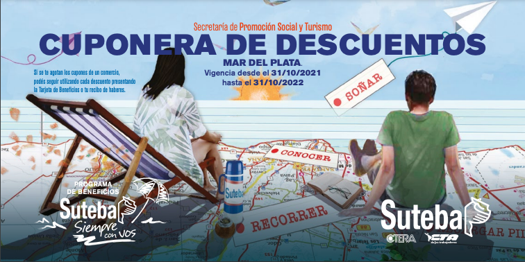 "SUTEBA siempre con vos" es el Programa de Beneficios que el Sindicato implementó en el año 2011. El mismo otorga una serie de descuentos en comercios locales de los distritos y también a nivel provincial, exclusivo para afiliadxs al SUTEBA y a su grupo familiar.