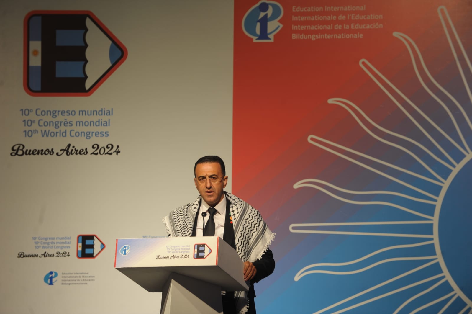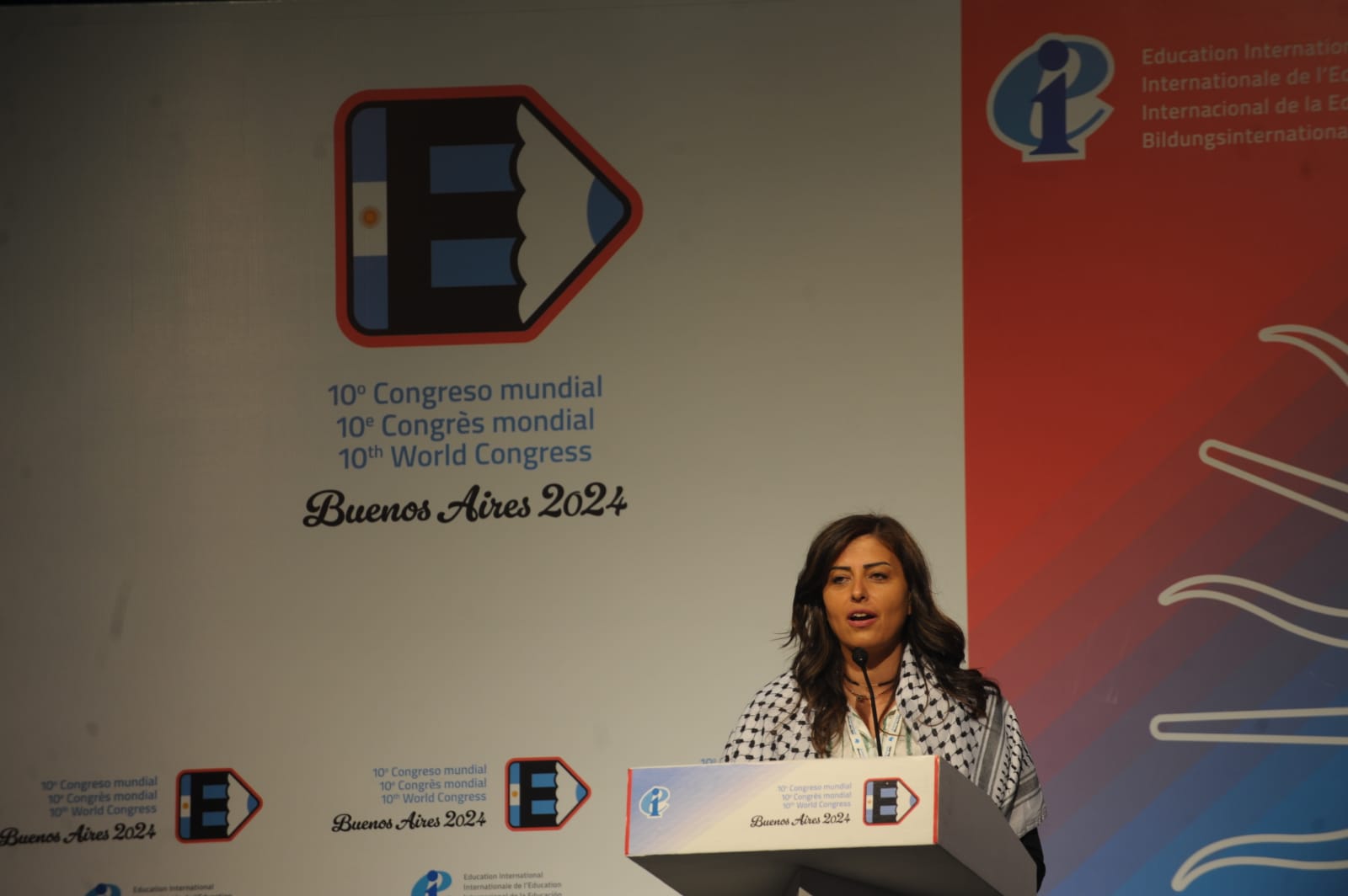 "Aquí en Argentina, hemos expresado nuestra solidaridad con nuestros y nuestras colegas, nuestros maravillosos, Trabajadores y hospitalarios anfitriones y anfitrionas. Están enfrentando una escalada en la inflación, recortes salariales, aumento en la pobreza, y cuando alzan la voz, son recibidos con represión, mentiras y amenazas personales. Pero ellos y ellas no se rinden, defendiendo a sus Estudiantes, sus comunidades y su país. La patria no se vende", David Edwards, Secretario General de la Internacional de la Educación.