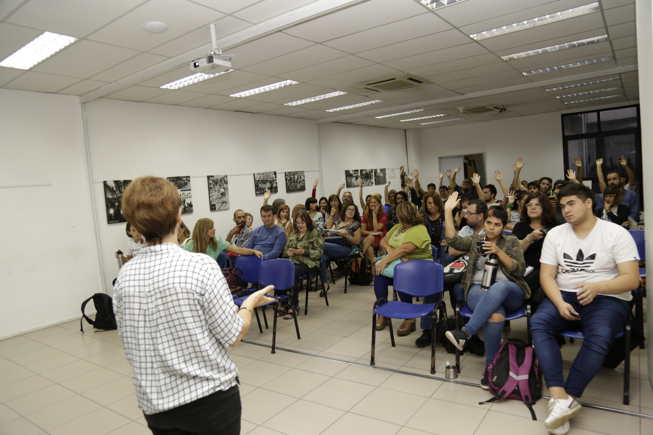 En un encuentro organizado por la Secretaría Gremial y con la presencia de las Secretarias Generales Adjuntas, Silvia Almazán y María Laura Torre; la Secretaria Gremial, Marcela Escobar; la Secretaria de Educación Superior, Sandra Ramal; la Subsecretaria de Cultura y Educación, Fabiana Guerrero; y el Secretario de Educación Artística, Pedro Ponce; se analizaron, debatieron y generaron propuestas para seguir luchando hacia el futuro por un proyecto educativo que garantice el derecho social a la Educación Superior, brindando las condiciones laborales y materiales necesarias, que deben estar acompañadas por Políticas Socioeducativas y un financiamiento educativo que permita jerarquizar el Subsistema Formador.