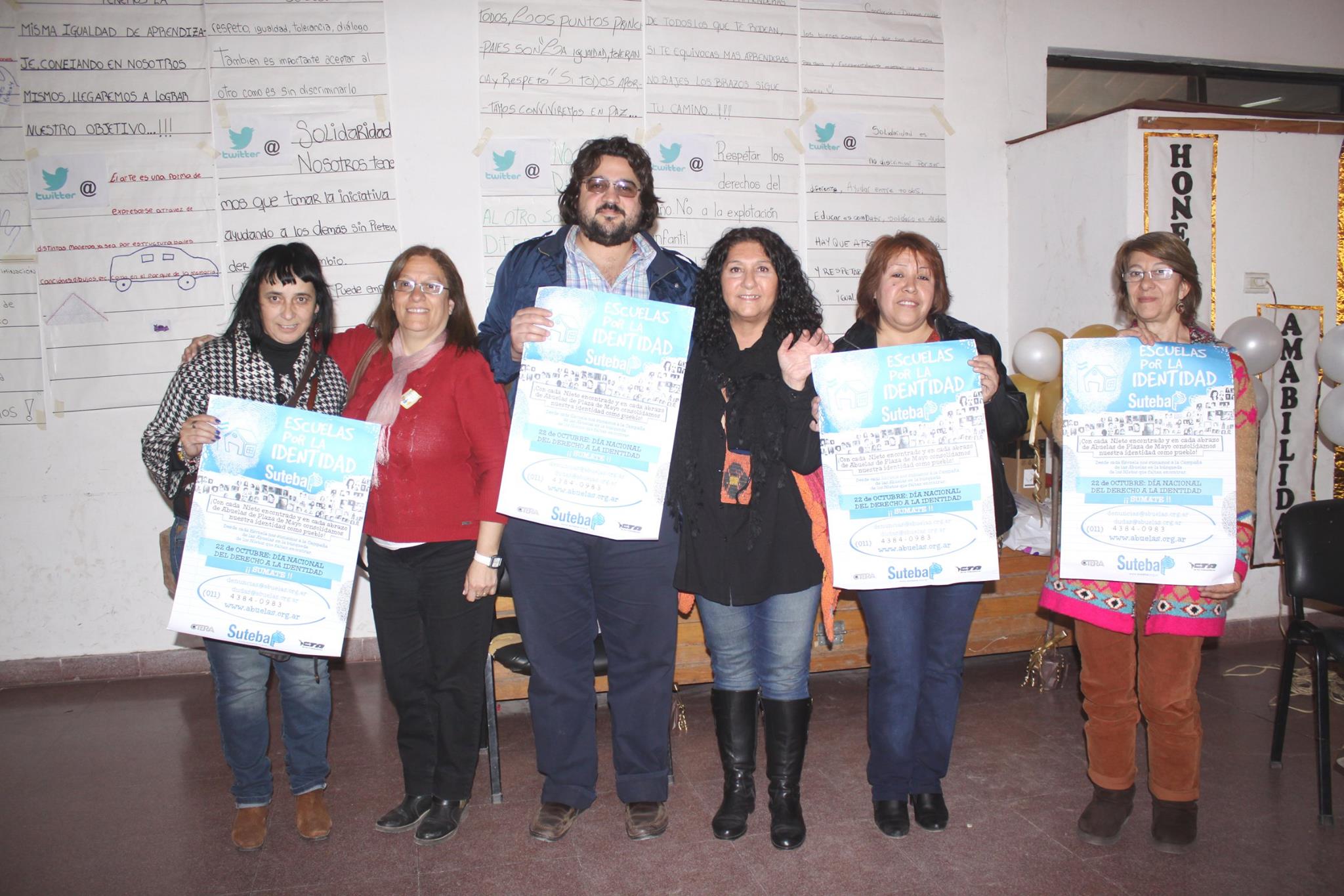 Por último, la Subsecretaria de DDHH del SUTEBA compartió: "Lo segundo que les venimos a presentar tiene que ver con nuestras Abuelas de Plaza de Mayo, que desde hace 37 años están buscando a sus nietos, robados por la dictadura. Los bebés eran entregados a cualquier familia, por eso el reclamo continúa. Con Estela de Carlotto, la presidenta de Abuelas, presentamos esta campaña, para que ayudemos a las abuelas, ya que casi 400 nietos todavía no fueron recuperados. Pueden ser una maestra, un preceptor, un tío o un primo, queremos que los centros de estudiantes se sumen a esta campaña".