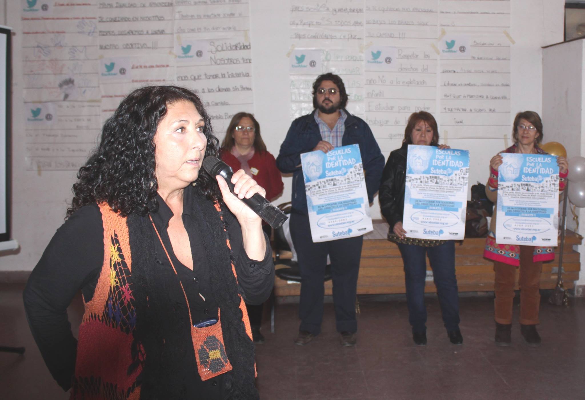 Estuvieron presentes los dirigentes locales del SUTEBA, Alicia Corvalán, Lucía Raimondi y Dante Boeri, la integrante del Equipo Provincial de DDHH, Silvia Zustovich, y la Subsecretaria de DDHH del SUTEBA, Patricia Romero Díaz, quien expresó: "Venimos a este espacio de discusión y debate a presentar dos campañas. Ustedes los alumnos de primaria y secundaria pueden ser protagonistas de esta campaña. Tienen el privilegio de vivir en una etapa donde la misma escuela los convoca a que se organicen, a que discutan, a que debatan y a que aprendan a defender sus derechos. Son privilegiados de vivir en esta etapa de la escuela pública, tienen que aprovechar este momento, tienen que defender sus derechos, siempre a partir del diálogo. Venimos de SUTEBA y, a lo largo de la historia, los trabajadores aprendimos que la mejor manera de defender nuestros derechos, es organizándonos, es el colectivo, nunca solos. Y así como ustedes se organizan en el cuerpo de delegados de cada escuela, los trabajadores nos organizamos en el sindicato".