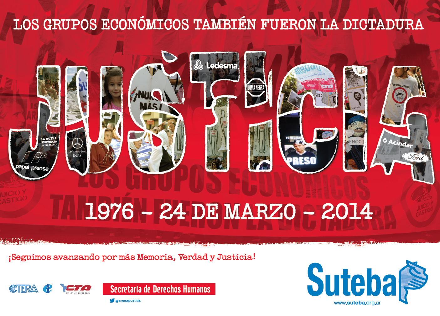 20/03/2014A 38 años de la última dictadura cívico-militar, por los 30 mil compañeros y por los 600 docentes detenidos - desaparecidos, este 24 de marzo ¡TODOS A LA PLAZA! Concentramos a las 12 horas en Avenida de Mayo y Cerrito.