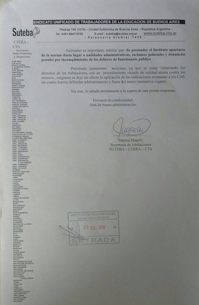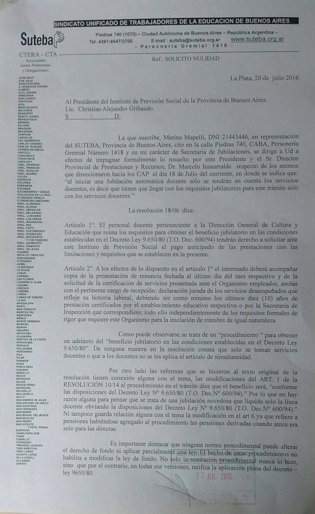 Ante el procedimiento de modificaciones arbitrarias en la Jubilación Automática Docente que llevó a cabo el Instituto de Previsión Social, el Sindicato presentó una denuncia solicitando la nulidad del hecho.
