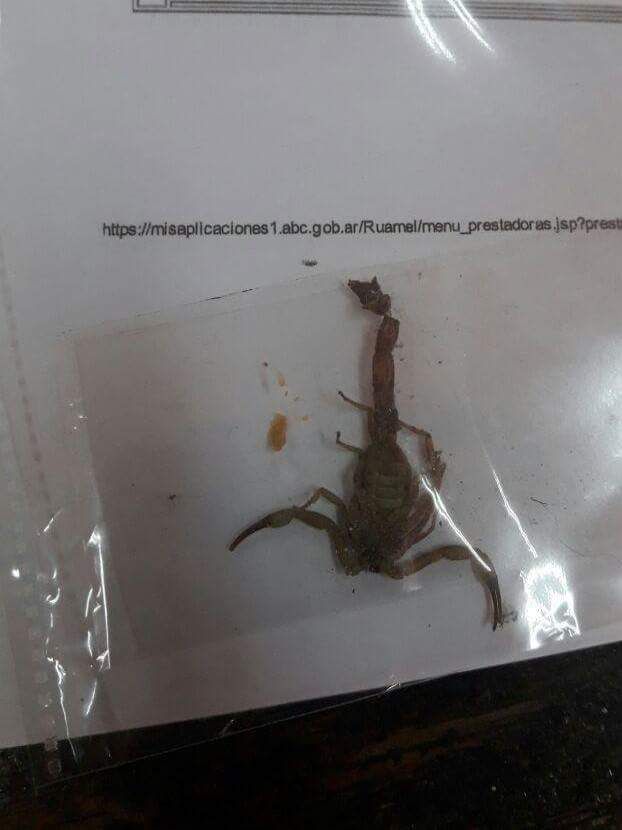 Llevanos al Instituto Malbran, los ejemplares de esta especie de escorpión encontrados, a fin de tener un informe
