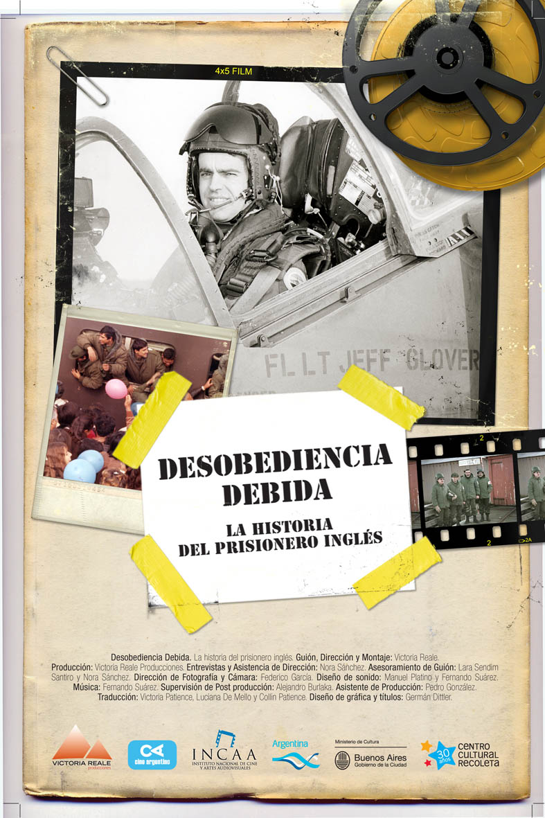 Entrada: 4$ | Guión, Dirección y Montaje: Victoria Reale Producción: Victoria Reale Producciones Entrevistas y Asistencia de Dirección: Nora Sánchez Asesoramiento de Guión: Lara SENAIM Santiro y Nora Sánchez Dirección de Fotografía y Cámara: Federico García Diseño de Sonido: Manuel Platino y Fernando Suárez Música: Fernando Suárez Supervisión de Post Producción: Alejandro Burlaka Asistente de Producción: Pedro González Traducción: Victoria Patience, Luciana de Mello y Collin Patience Diseño de gráfica y títulos: Germán Dittler | Por primera vez, el único prisionero británico retenido por la dictadura militar hasta un mes después de finalizada la guerra de Malvinas, habla frente a cámara. Y lo hace en un documental dirigido por la hija del médico militar argentino que le curó las heridas que se produjo al eyectarse de su avión Harrier. El 21 de mayo de 1982, durante la guerra de Malvinas, el avión Harrier del teniente de la Royal Air Force Jeff Glover recibió el impacto de un misil lanzado por comandos argentinos. El piloto se eyectó y fue capturado. “Desobediencia Debida” cuenta qué le ocurrió durante las siete semanas que estuvo prisionero en la Argentina. La historia del piloto se entrelaza con la del ex mayor médico Luis Reale, que fue quien le brindó las primeras curaciones después de la eyección. Y que revela que su general le ordenó “presionar” a Glover para obtener información sobre la posición de su portaviones. “¿Qué quería decir con presionar? ¿Se refería a torturar?”, se pregunta en off su hija, Victoria Reale, la realizadora de la película. Además de develar detalles no conocidos de la guerra, Reale construye un ensayo acerca de la tortura y el deber de decir que no frente a órdenes contrarias a los derechos de las personas.