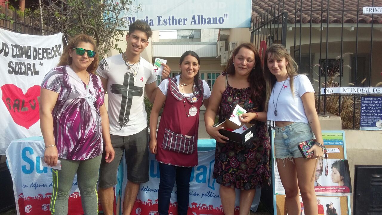 Centro de Salud de Tigre: el CAP María E. Albano junto con los alumnos del CEBAS 37 del distrito, adultos con orientación en Salud Pública, entregaron lazos alusivos al SIDA y 500 profilácticos. Esta acción se realizó en la vía pública y desde los colectivos que transitaban fueron llamados para recibir el material. Dentro del Centro se expusieron en cartelera todas las estadísticas e indicadores de la enfermedad y se proyectaron videos alusivos. A cargo de la actividad estuvieron Mirta Retamar, Responsable del Centro y Priscila Caro, preceptora del CEBAS. Además, participaron afiliadxs a SUTEBA y la comunidad. Según explicaron desde el CAP: "La experiencia fue muy exitosa porque la gente se paraba, escuchaba y la información tuvo una muy buena llegada".