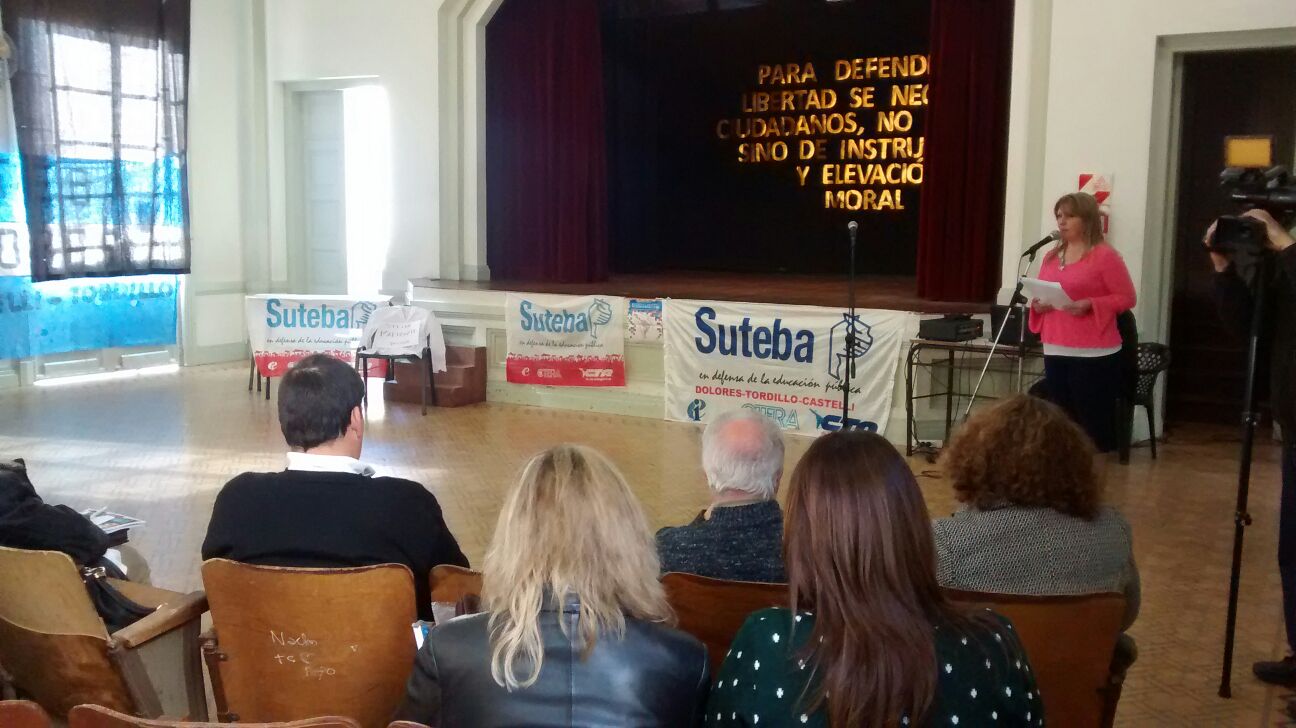 La apertura estuvo a cargo de la Secretaria General de SUTEBA Dolores, Gabriela Tissone, dando el recibimiento a los Trabajadores de la Educación y a las autoridades presentes.