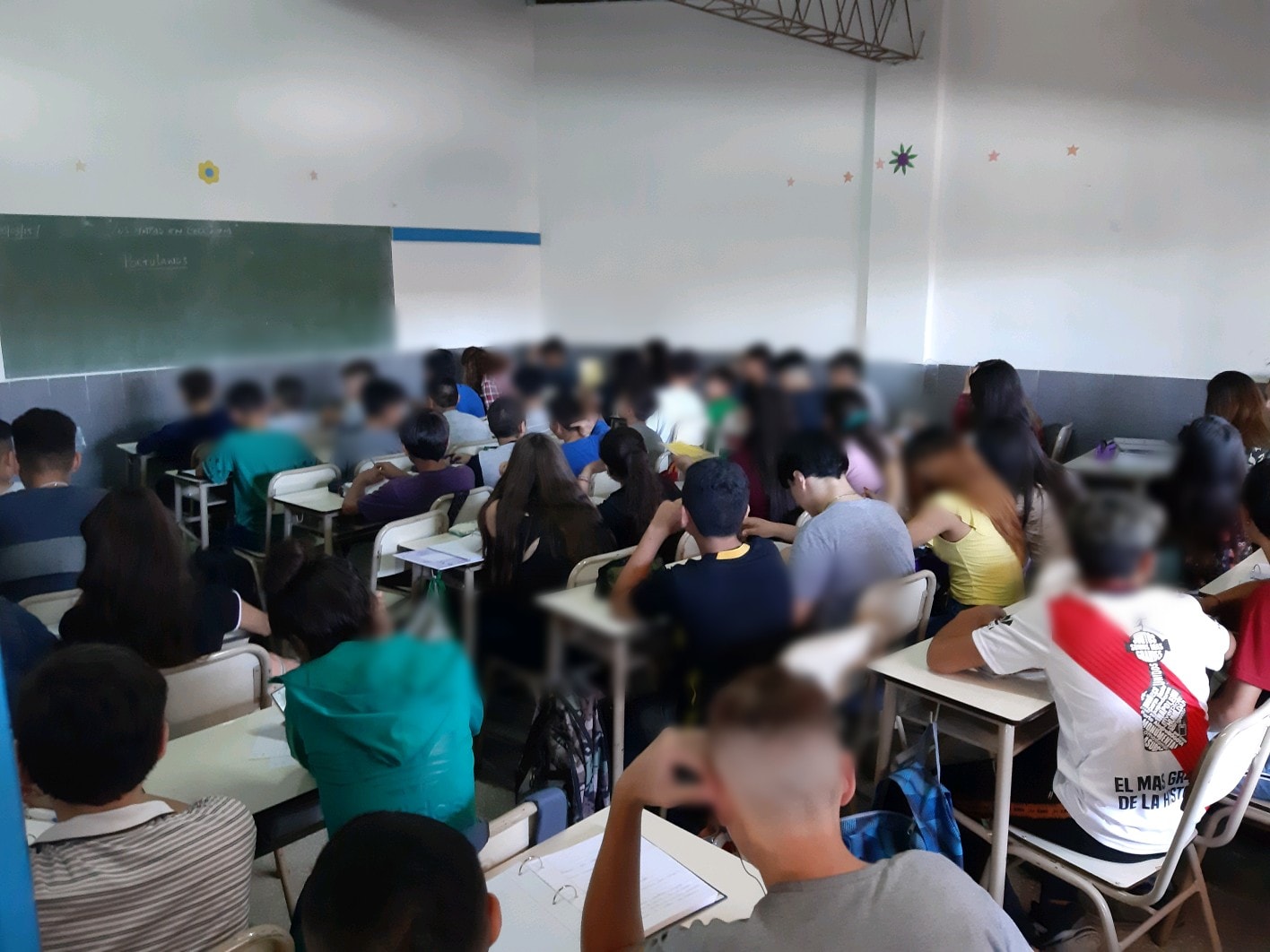 - Un curso con 72 estudiantes en el comedor de la Escuela.