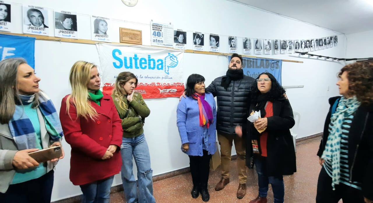 En representación del SUTEBA participaron de este emotivo acto Silvia Almazán, Secretaria General Adjunta; Patricia Romero Díaz, Secretaria de DDHH; Dante Boeri, Subsecretario de Docentes Noveles, Jóvenes y Estudiantes y Secretario General del SUTEBA Echeverría; Cintia Serato, Secretaria de DDHH del SUTEBA Echeverría, junto con Organizaciones sociales, autoridades municipales y miembros de la Comunidad Educativa.