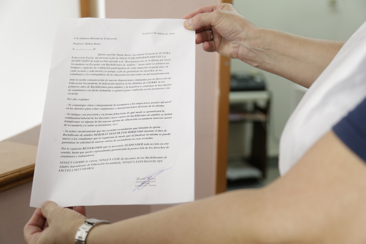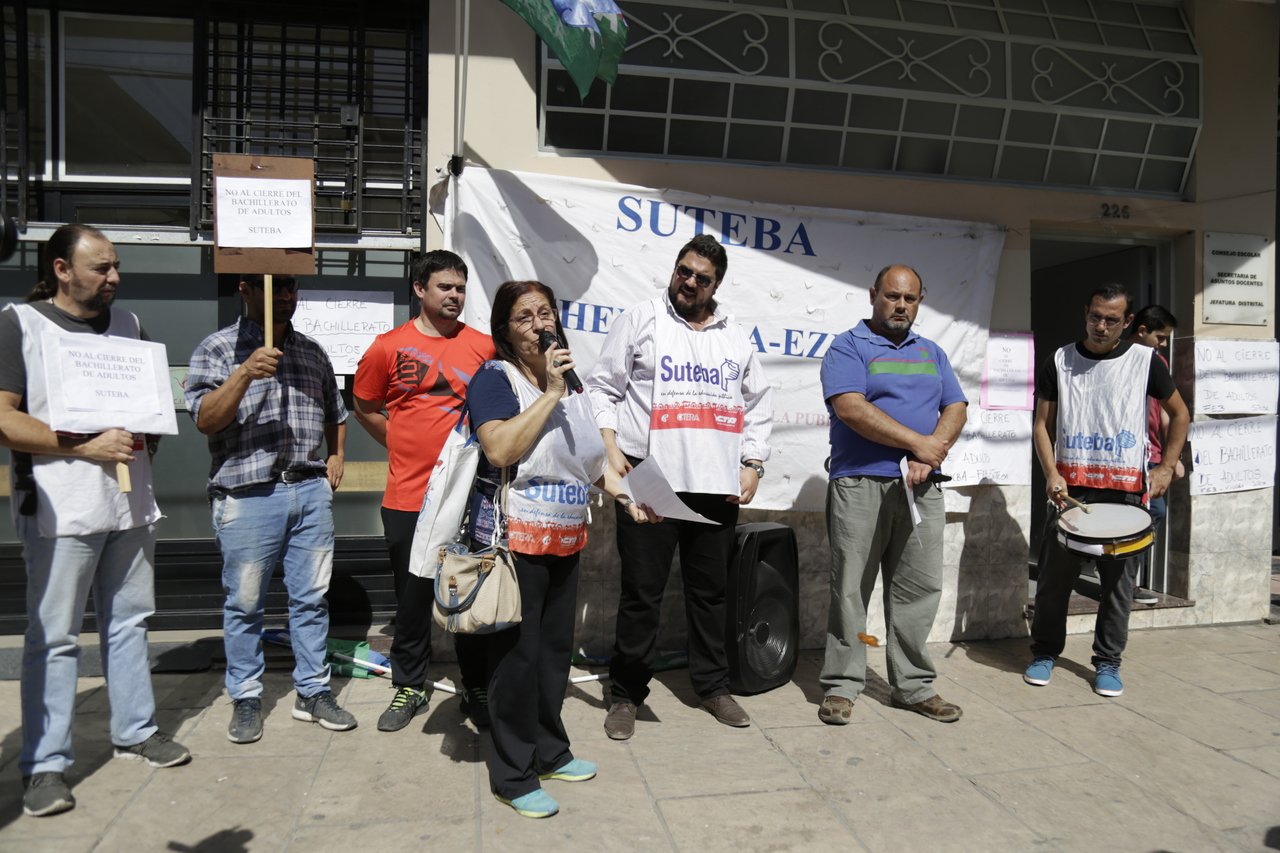 En el día de hoy, el SUTEBA Echeverría Ezeiza, en el marco del FUDB, se hizo presente en las Jefaturas Distritales de Esteban Echeverría y de Ezeiza junto a alumnxs, ex alumnxs y Docentes de los Bachilleratos de Adultxs exigiendo que se suspenda cualquier tipo de cierre de Bachillerato.