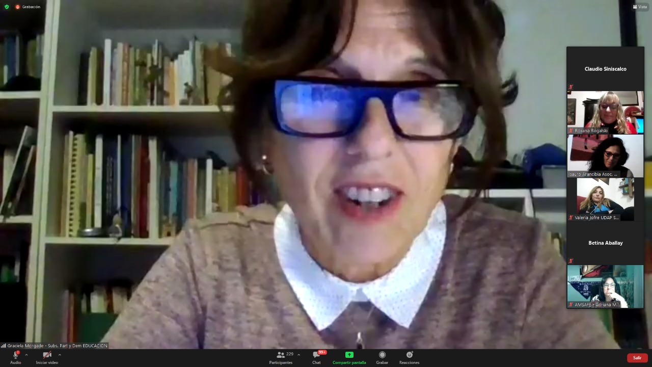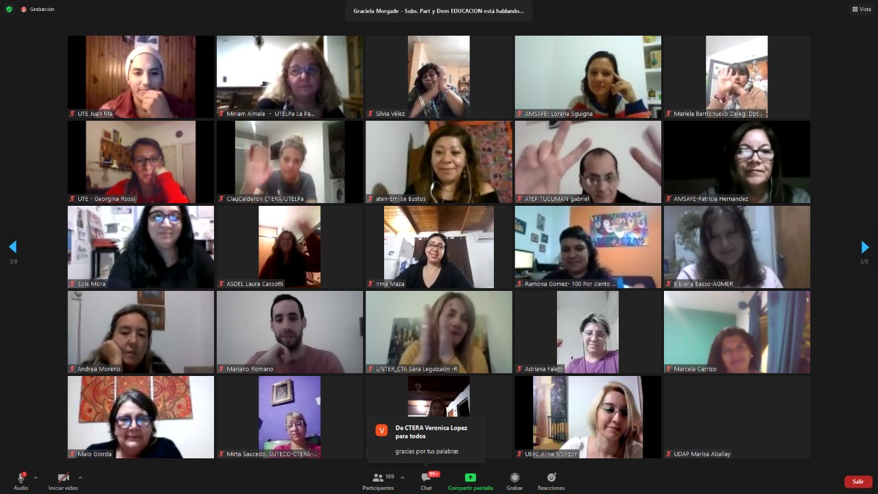Luego señaló que para el Ministerio y para la CTERA "es importante agradecer el interés y la dedicación de lxs Estudiantes que están participando de la formación, así como de todxs lxs compañerxs que se están sumando como oyentes en estos conversatorios; agradecer también a todas las Secretarías de Géneros y referentxs de las entidades de base, porque esta propuesta es colectiva y federal".