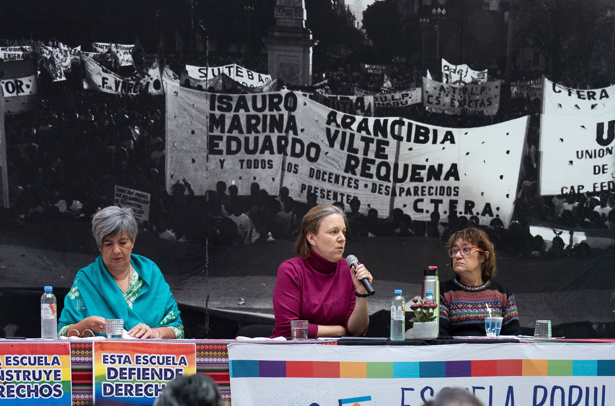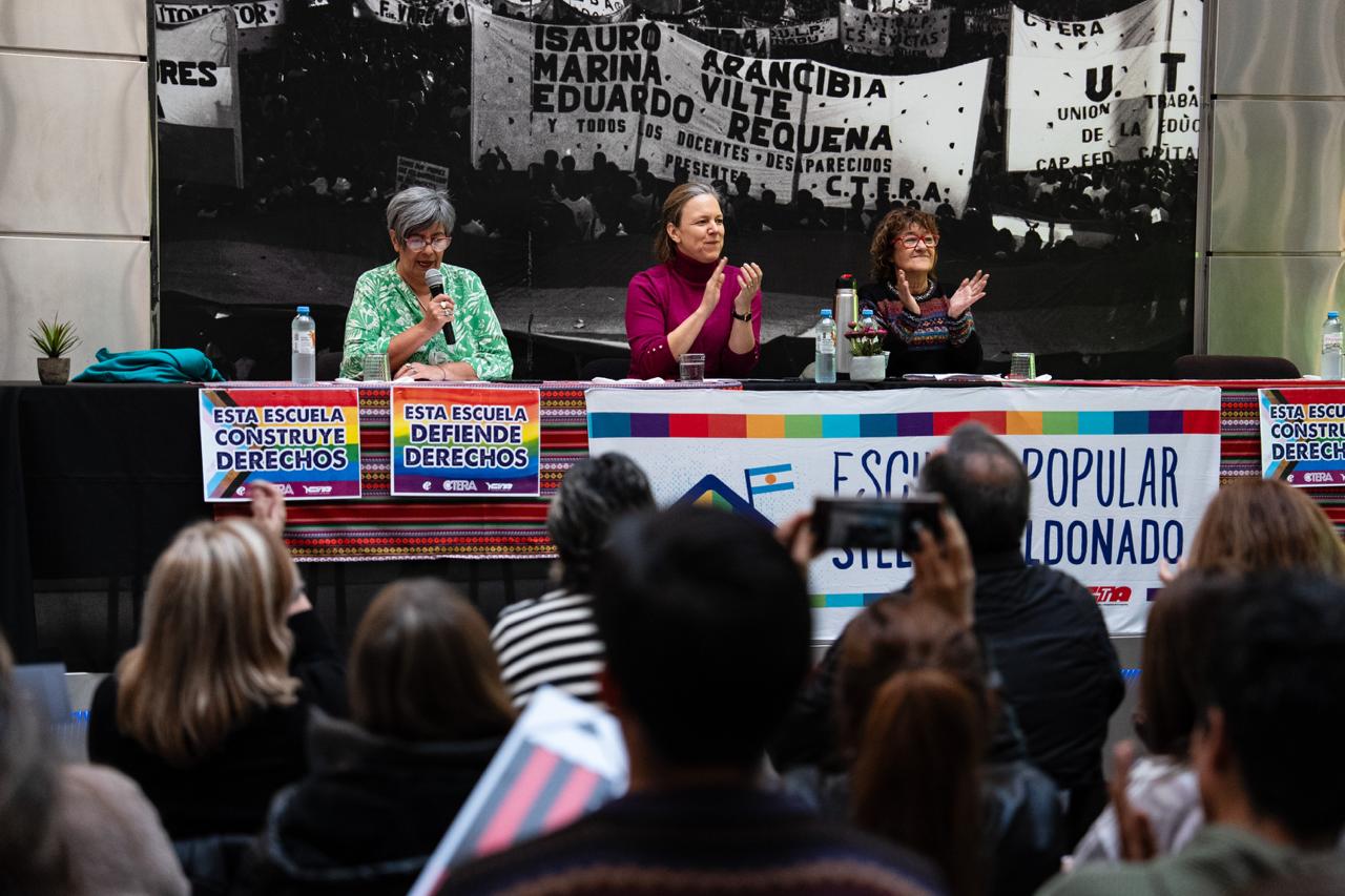 La apertura estuvo a cargo de Sonia Alesso, Secretaria General de CTERA; Uta Dirksen, Representante de FES en Argentina; y Lilia López, Secretaria de Género e Igualdad de Oportunidades, quien dio la bienvenida y el marco general de la actividad.