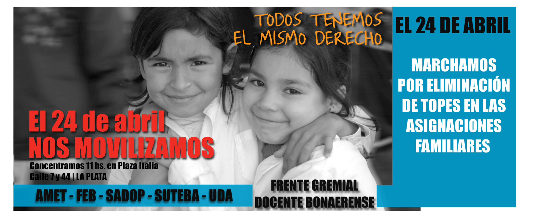SUTEBA convoca a una movilización en la provincia de Buenos Aires exigiendo la eliminación de los topes de las Asignaciones Familiares.