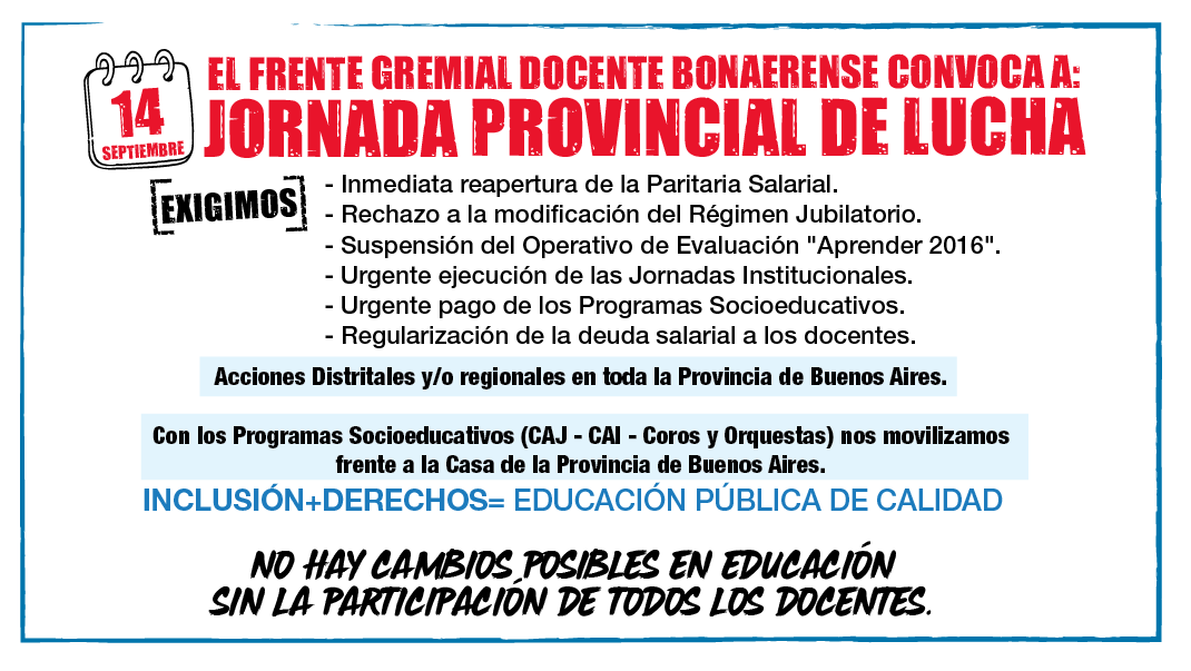 Con los Programas Socioeducativos (CAJ - CAI - Coros y Orquestas) nos movilizamos frente a la Casa de la Provincia de Buenos Aires.