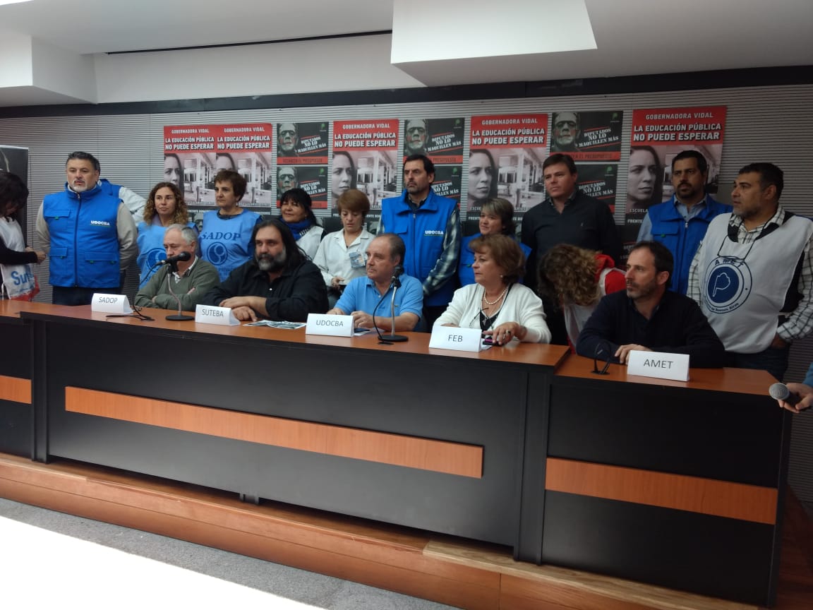 Los 5 gremios que conformamos el Frente de Unidad Docente Bonaerense anunciamos dar continuidad al Plan de lucha con un Paro de 48 hs. el lunes 8 y martes 9 de octubre, con una movilización a la Casa de la Provincia el día lunes.