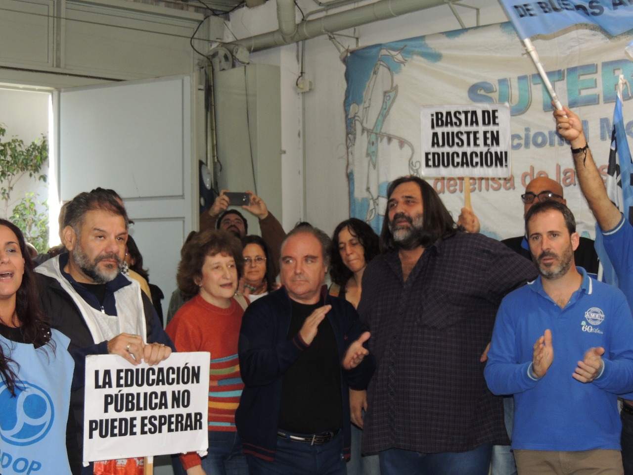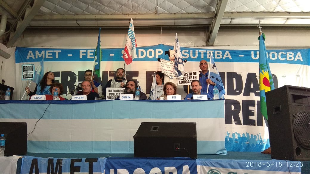 "Hoy le están dando miles y miles de pesos a fundaciones para capacitación, mientras intentan cerrar los Institutos de Formación Docente en CABA, por ejemplo. La decisión de asumir un préstamo con el FMI va a implicar ajuste. Y el ajuste va a ser a nuestros salarios, nuestras Escuelas y nuestra salud. Nosotrxs, hagan lo que hagan y digan lo que digan, vamos a pelear por una Educación Pública de calidad. Tenemos que valorar mucho al FUDB, porque juntxs y en unidad no pueden derrotarnos", enfatizó Baradel.