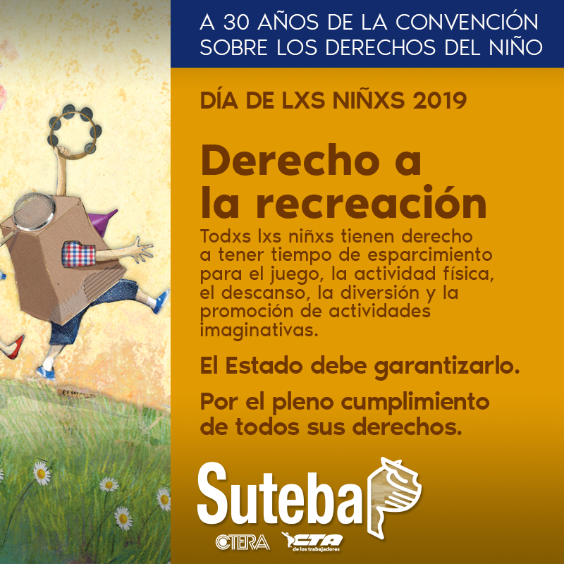 Por eso, desde el SUTEBA, a través de esta campaña por los derechos de la niñez, decimos a 30 años de la Convención Internacional sobre los Derechos del Niño: