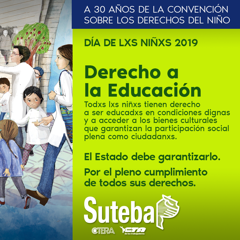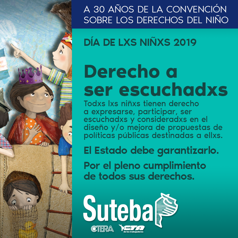 Por eso, desde el SUTEBA, a través de esta campaña por los derechos de la niñez, decimos a 30 años de la Convención Internacional sobre los Derechos del Niño: